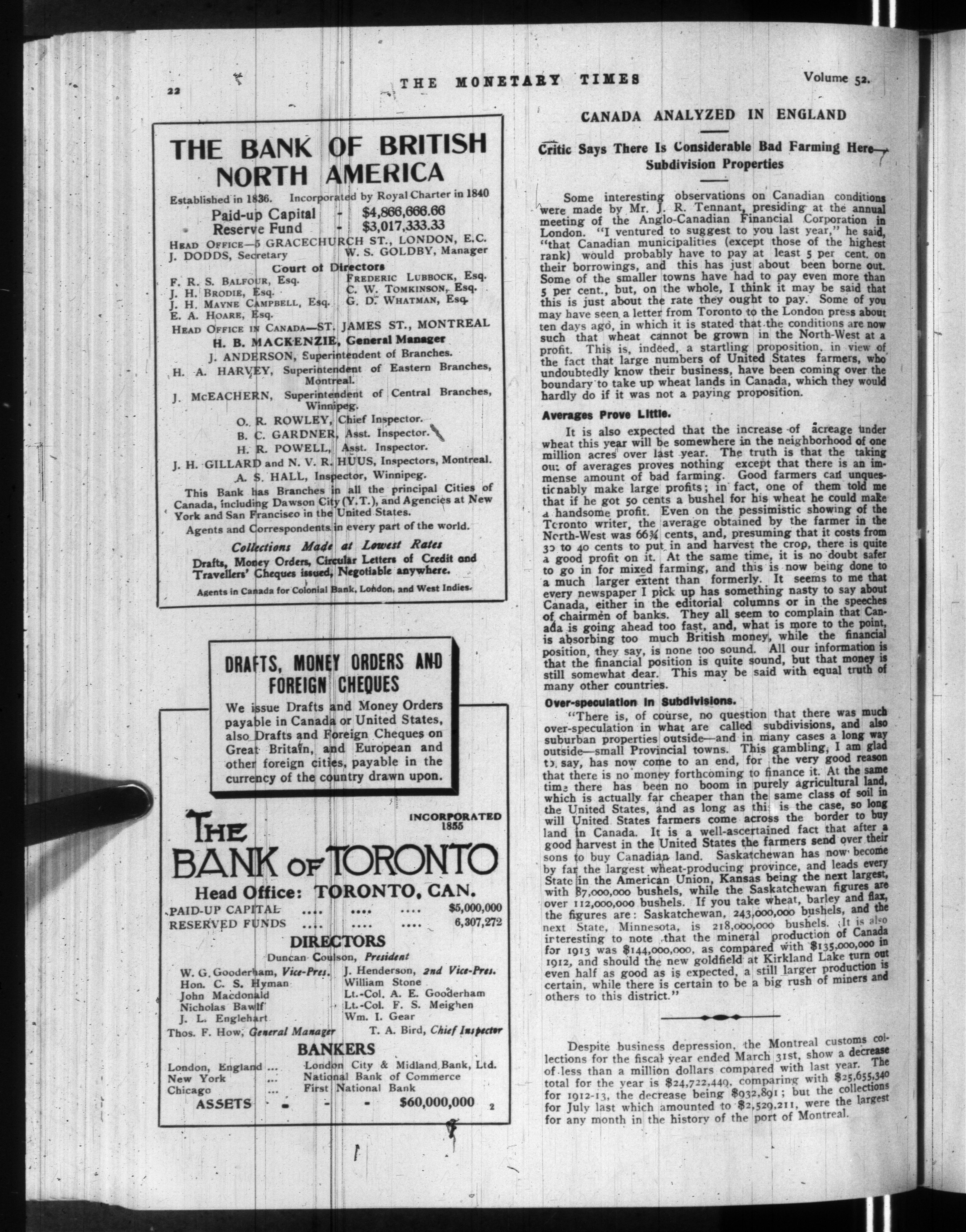 The monetary times, trade review and insurance chronicle : Vol. 52, [no. 15] (April 10, 1914)