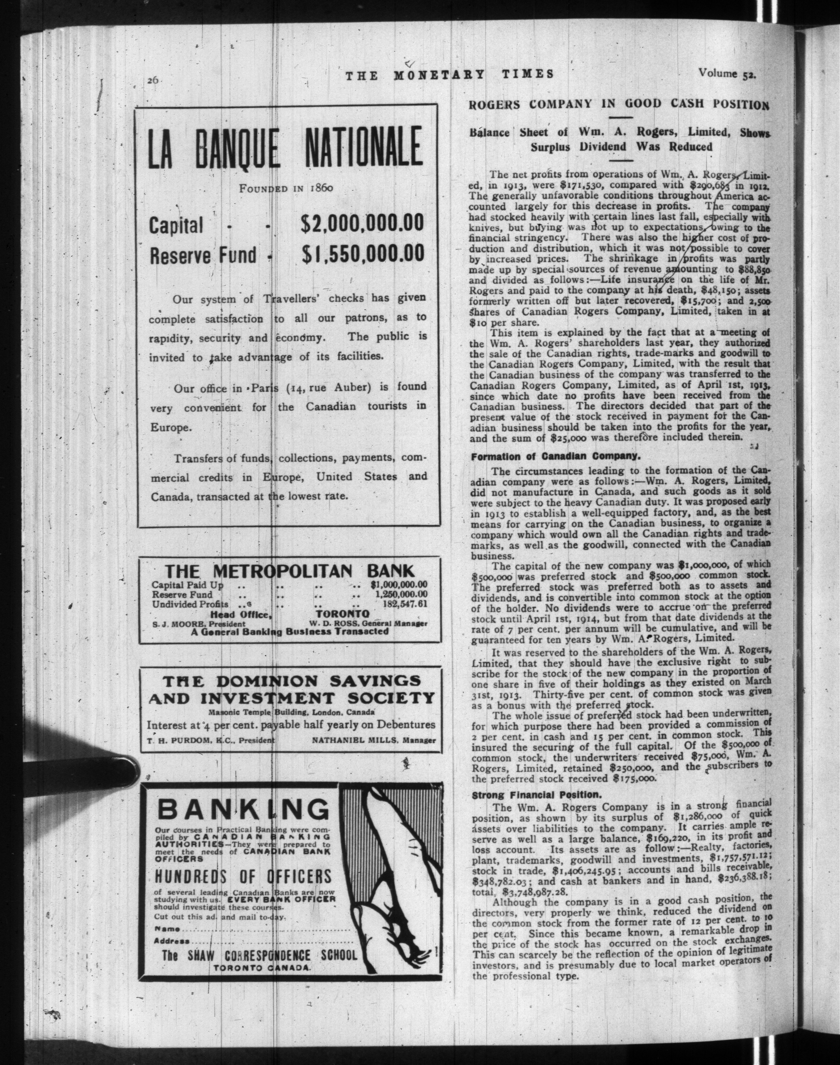 The monetary times, trade review and insurance chronicle : Vol. 52, [no. 15] (April 10, 1914)