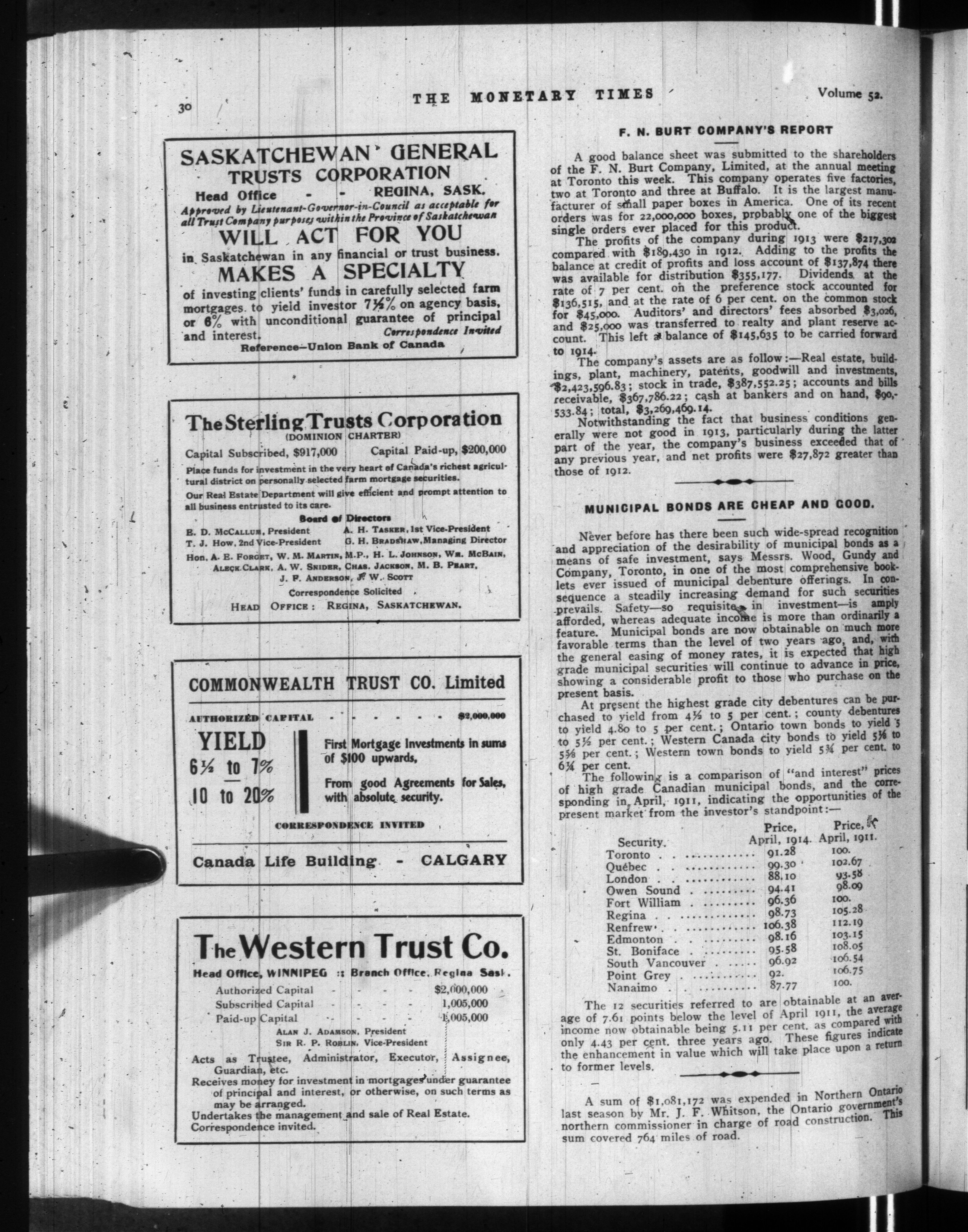 The monetary times, trade review and insurance chronicle : Vol. 52, [no. 15] (April 10, 1914)