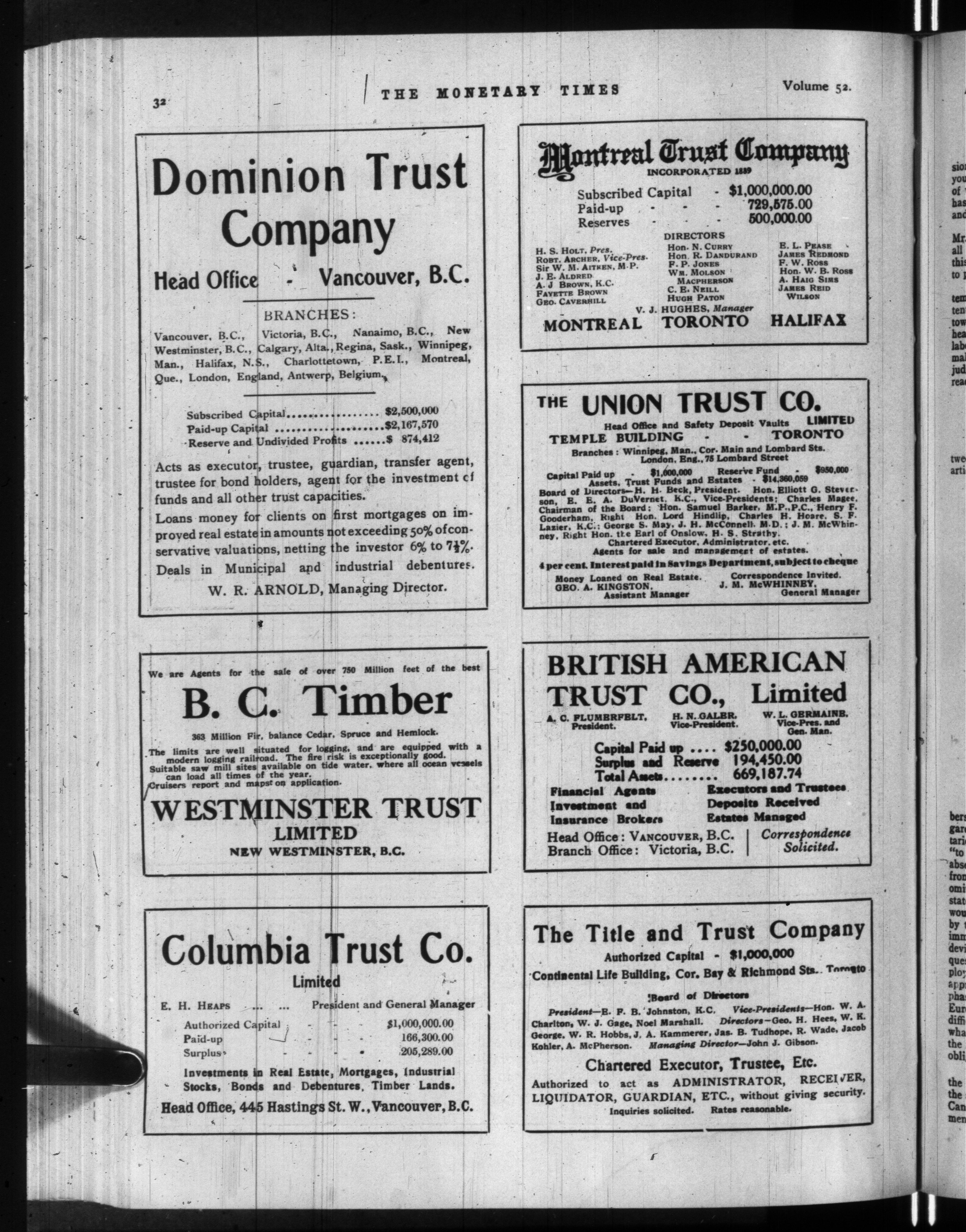 The monetary times, trade review and insurance chronicle : Vol. 52, [no. 15] (April 10, 1914)