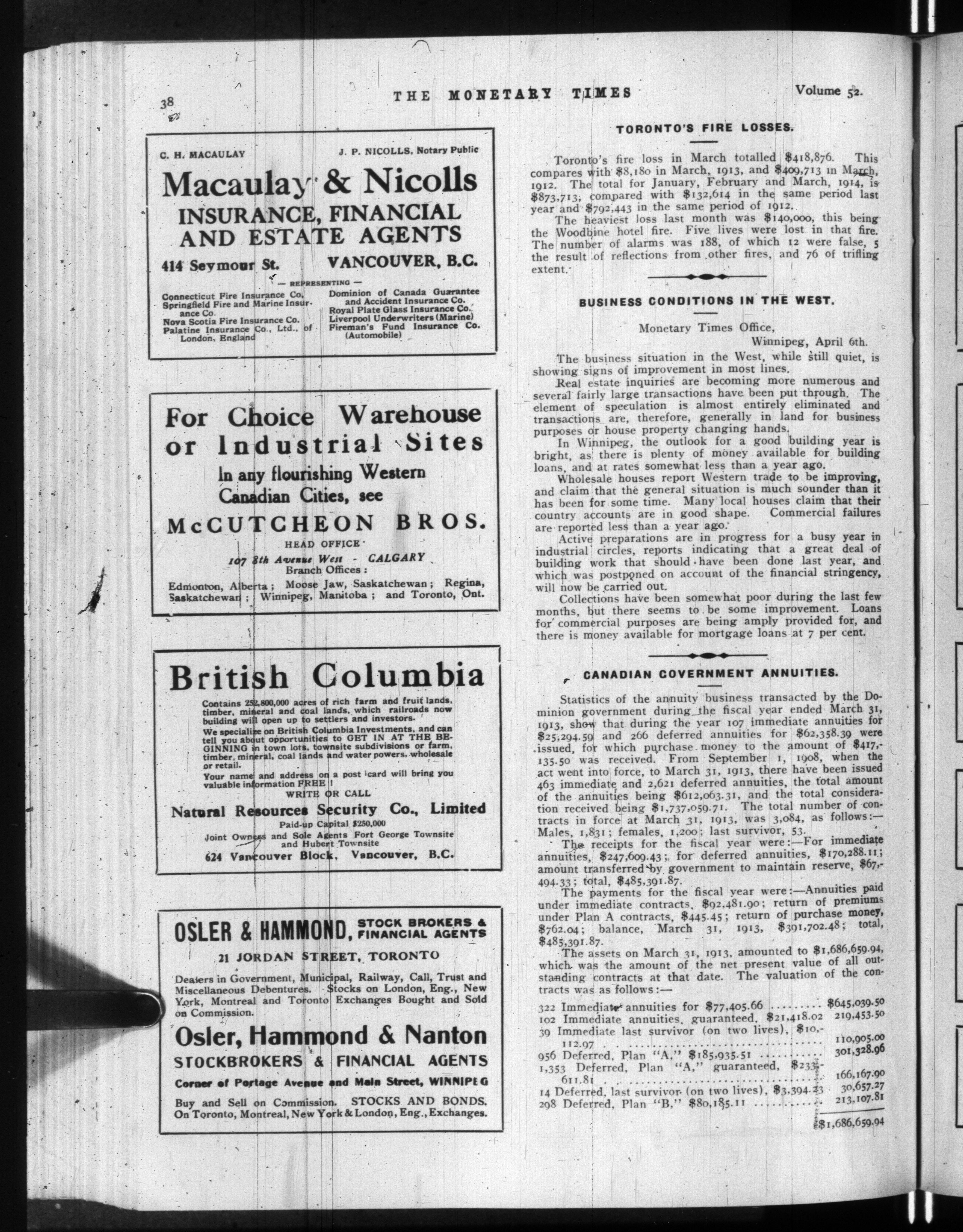 The monetary times, trade review and insurance chronicle : Vol. 52, [no. 15] (April 10, 1914)