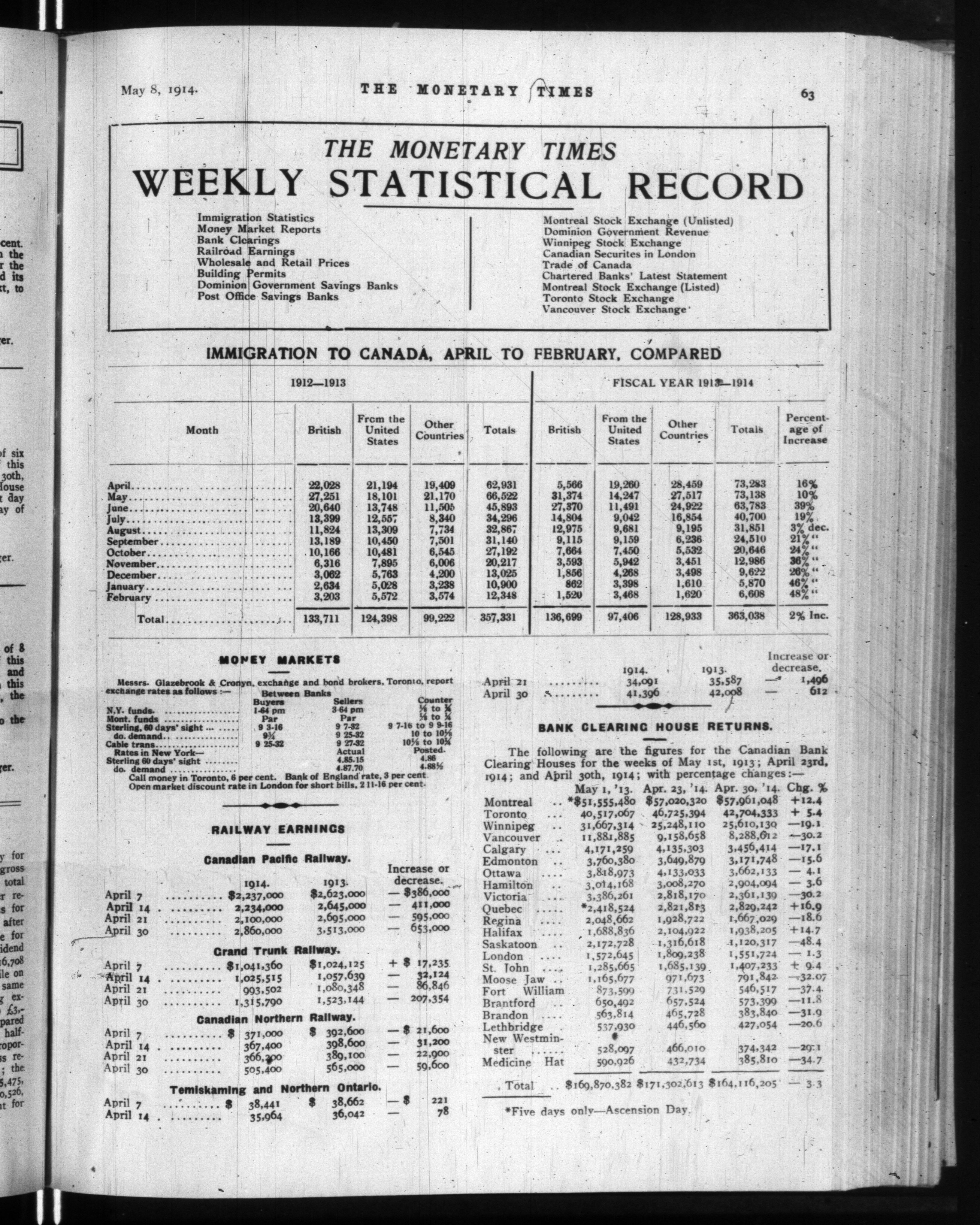 The monetary times, trade review and insurance chronicle : Vol. 52, [no. 19] (May 8, 1914)