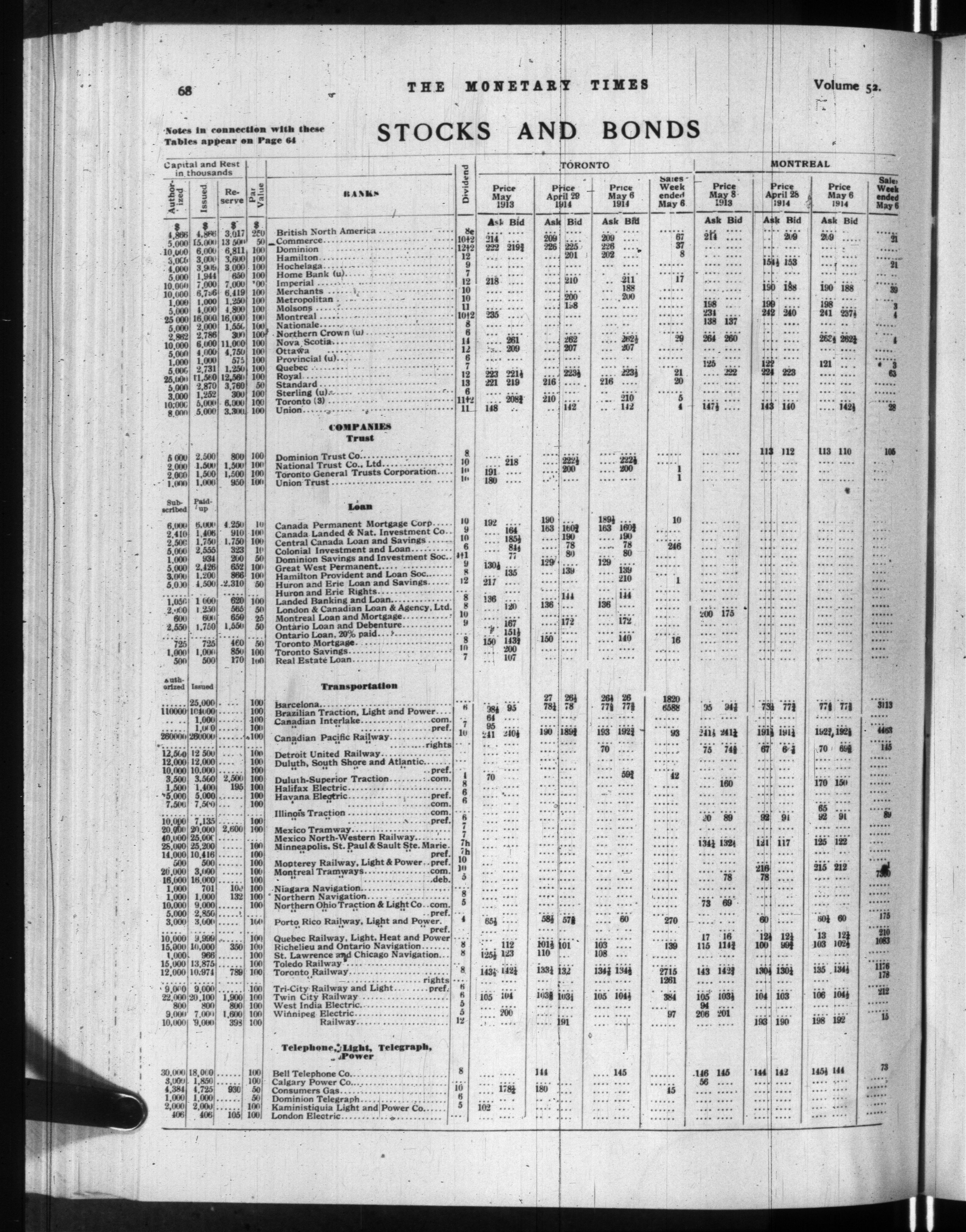 The monetary times, trade review and insurance chronicle : Vol. 52, [no. 19] (May 8, 1914)