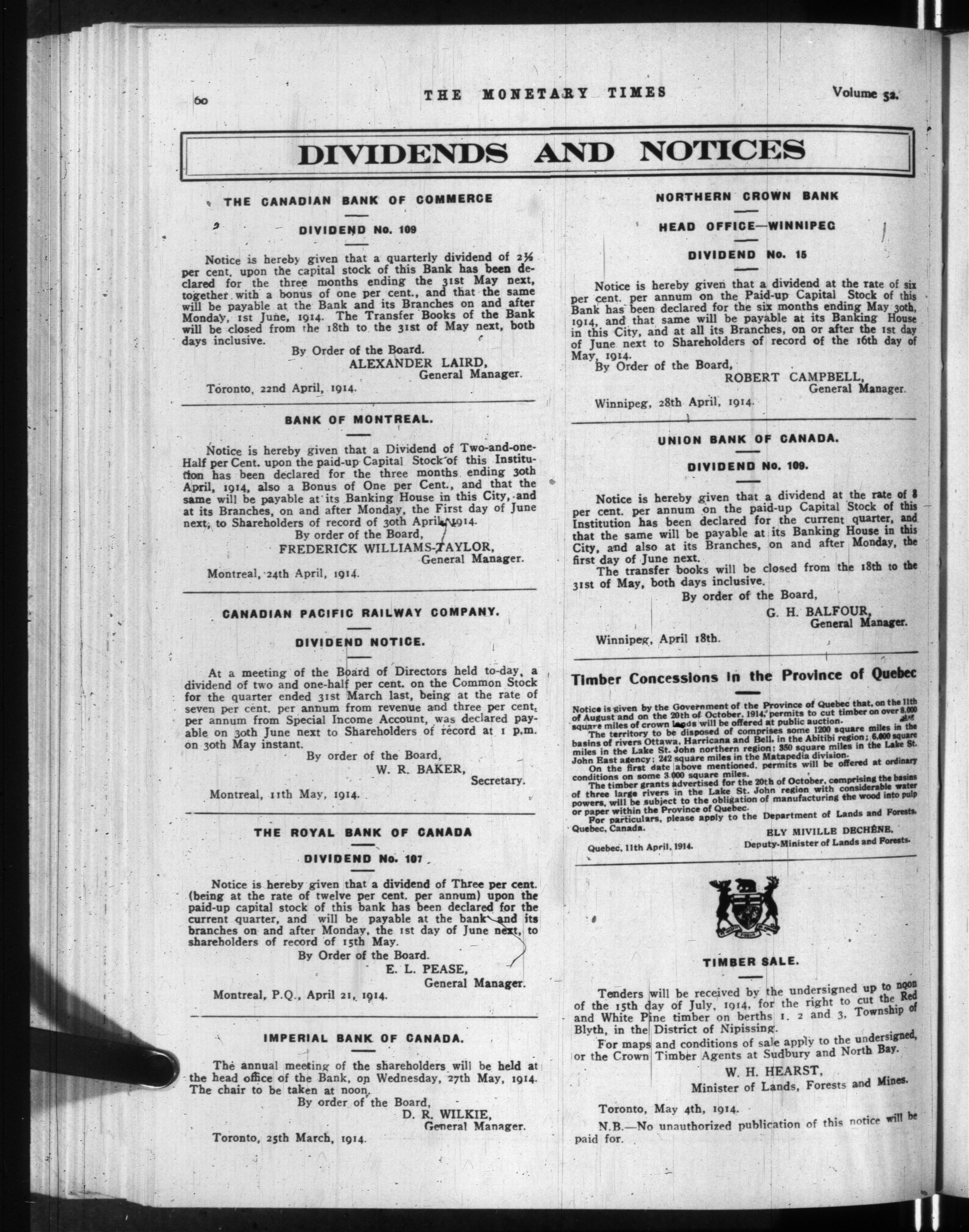 The monetary times, trade review and insurance chronicle : Vol. 52, [no. 20] (May 15, 1914)