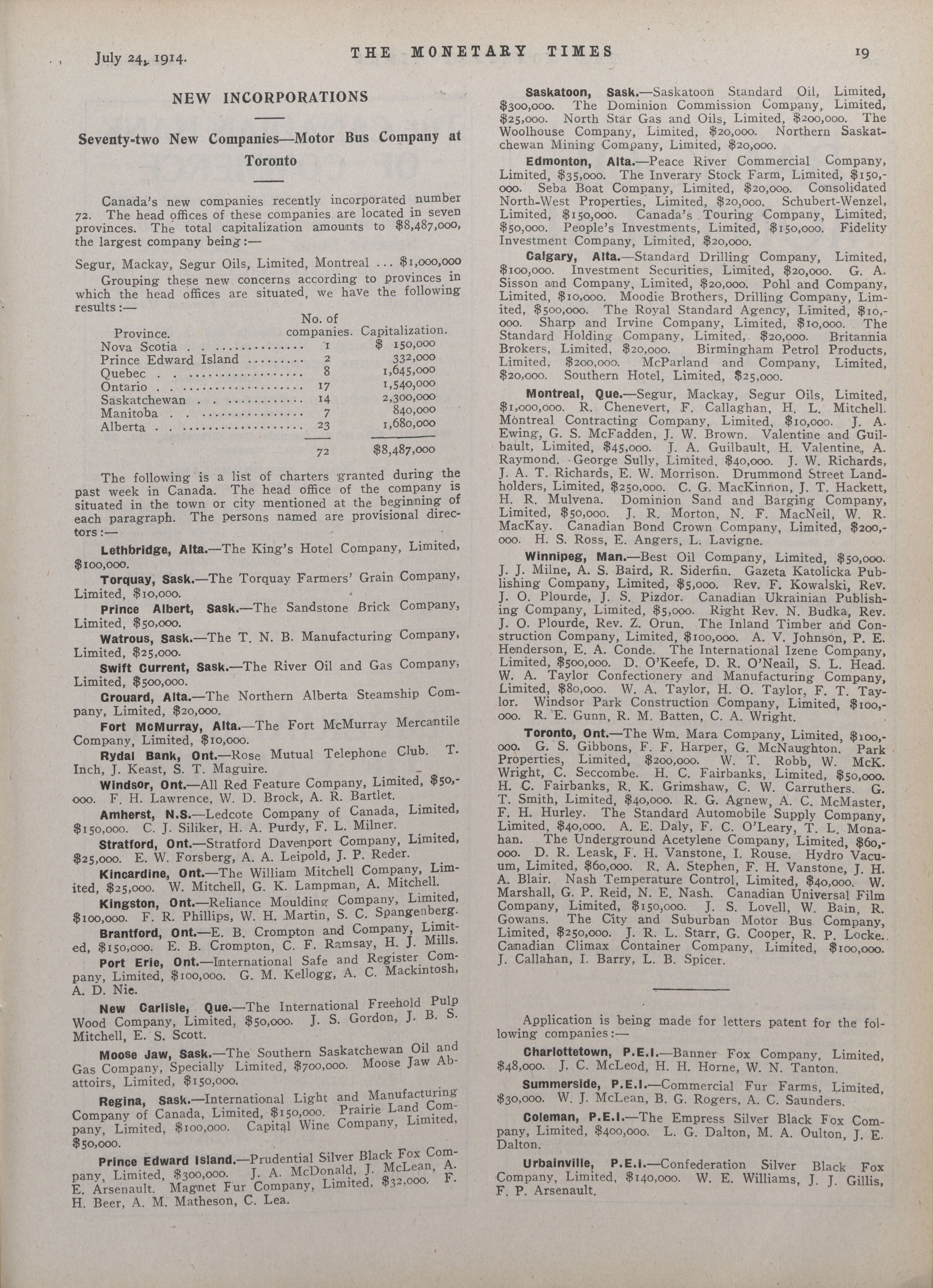 - The Monetary Times, trade review and insurance chronicle. : Volume 53 No. 4 (July 24, 1914)