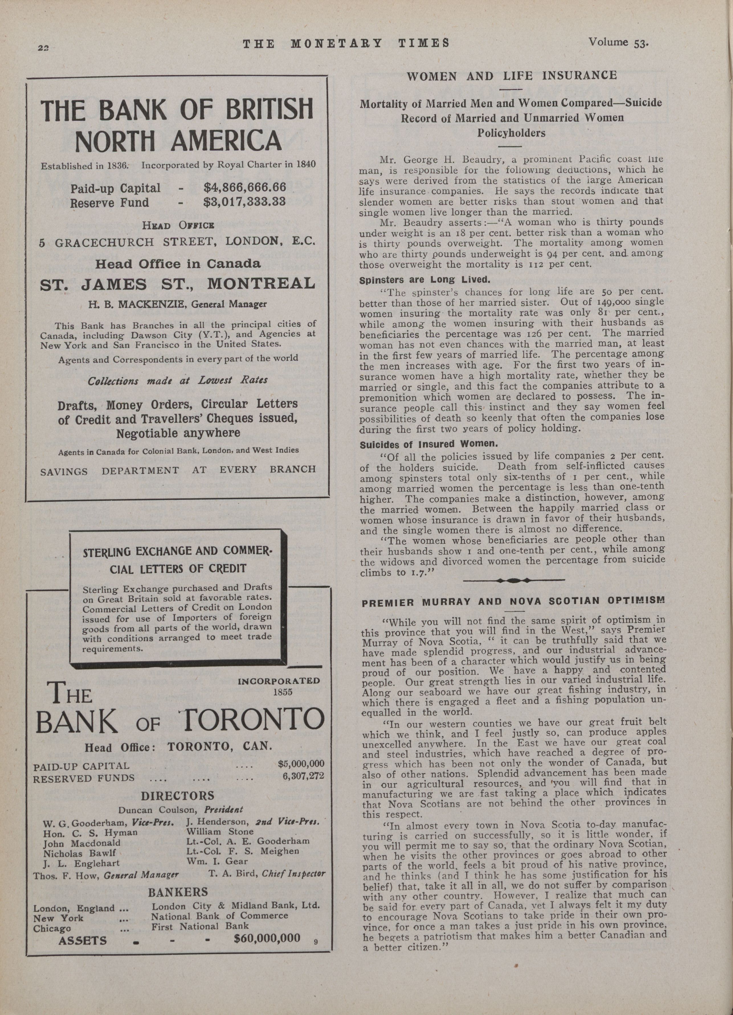 - The Monetary Times, trade review and insurance chronicle. : Volume 53 No. 4 (July 24, 1914)