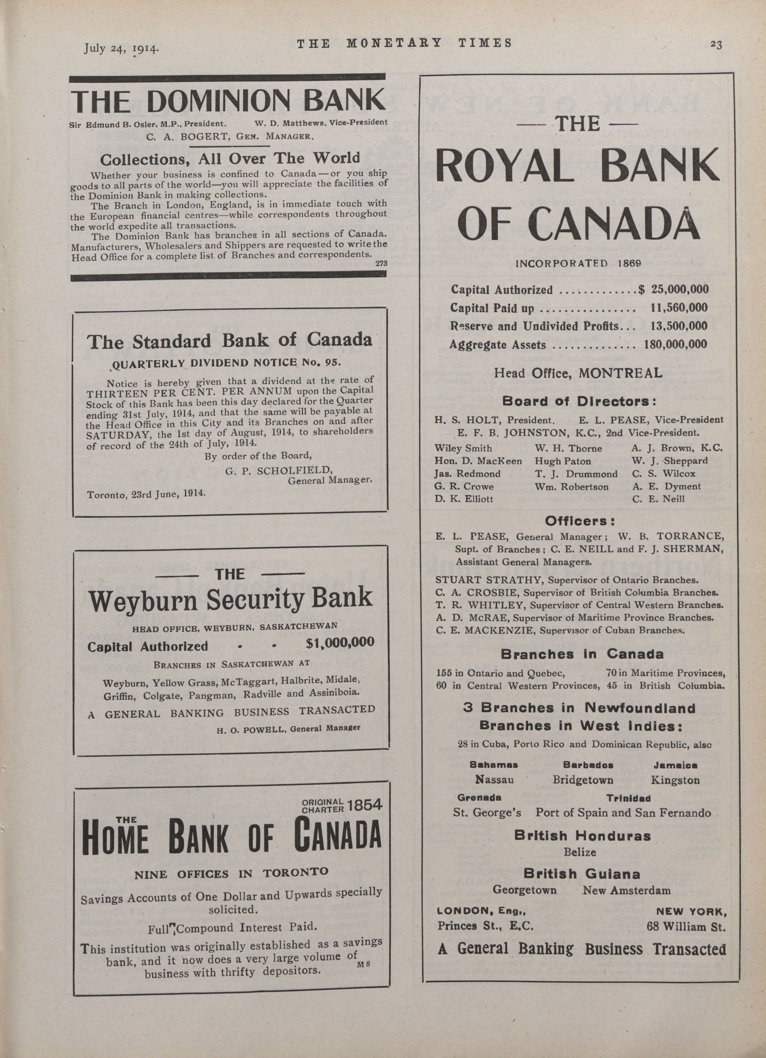 - The Monetary Times, trade review and insurance chronicle. : Volume 53 No. 4 (July 24, 1914)