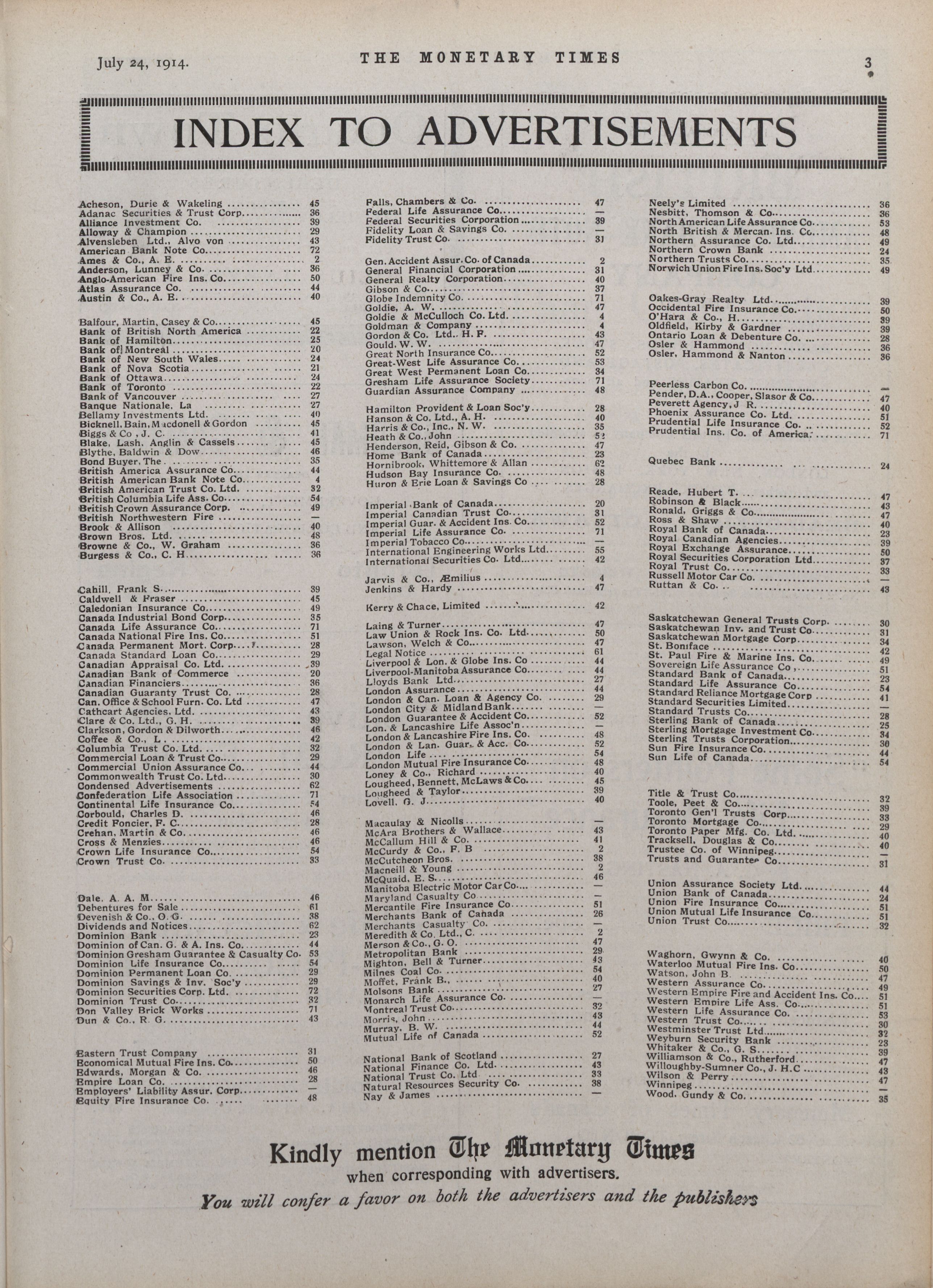 The Monetary Times, trade review and insurance chronicle. : Volume 53 No. 4 (July 24, 1914)