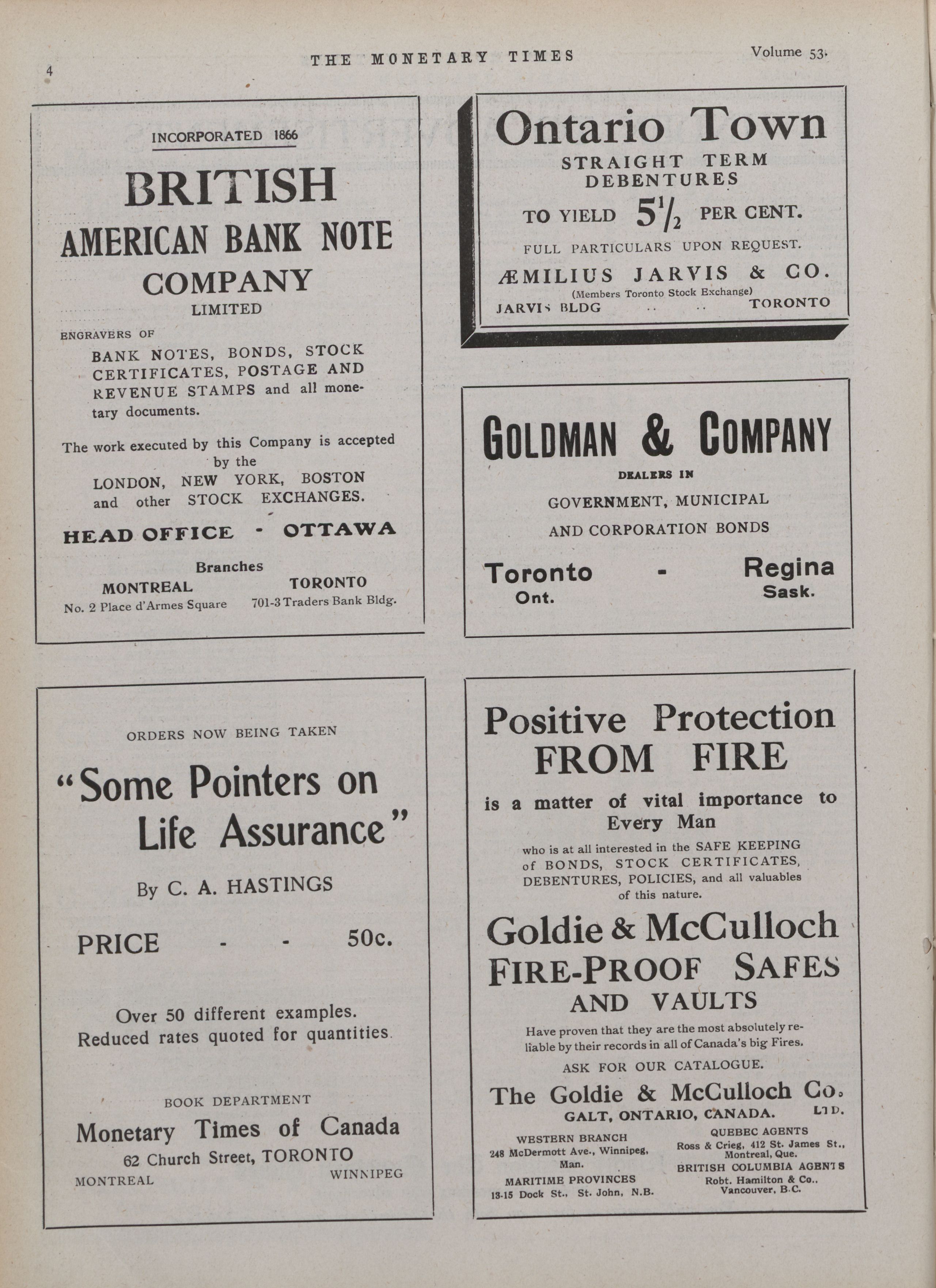 - The Monetary Times, trade review and insurance chronicle. : Volume 53 No. 4 (July 24, 1914)