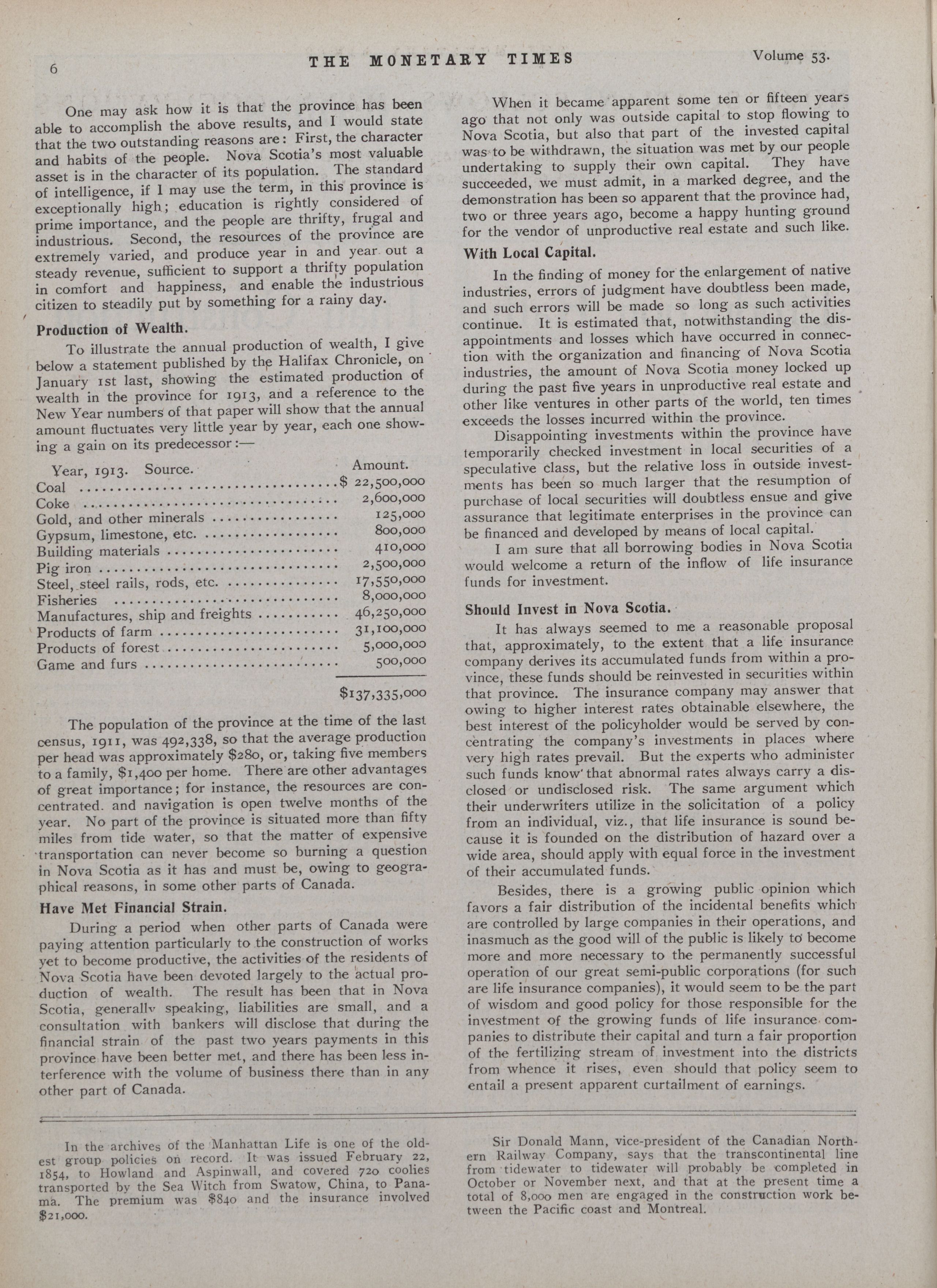 - The Monetary Times, trade review and insurance chronicle. : Volume 53 No. 4 (July 24, 1914)