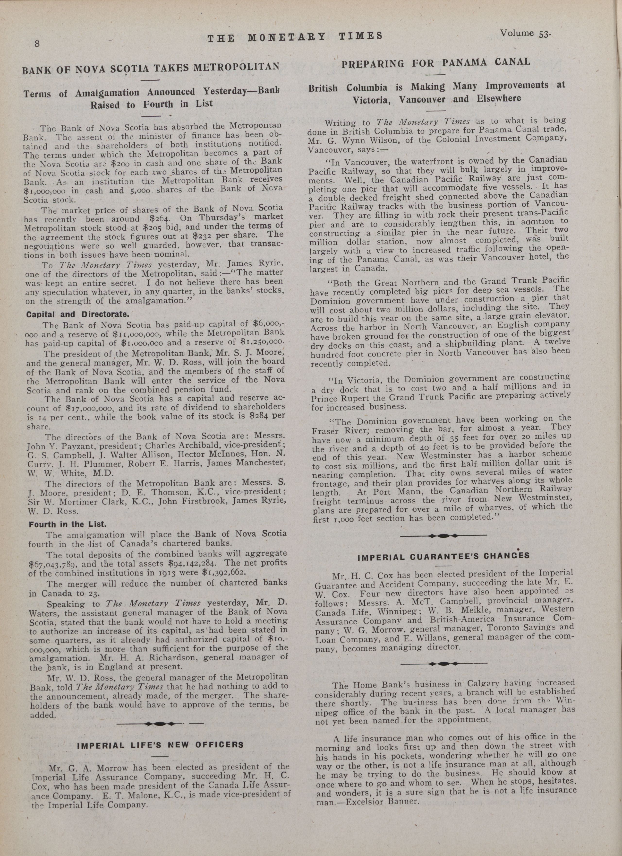 The Monetary Times, trade review and insurance chronicle. : Volume 53 No. 4 (July 24, 1914)