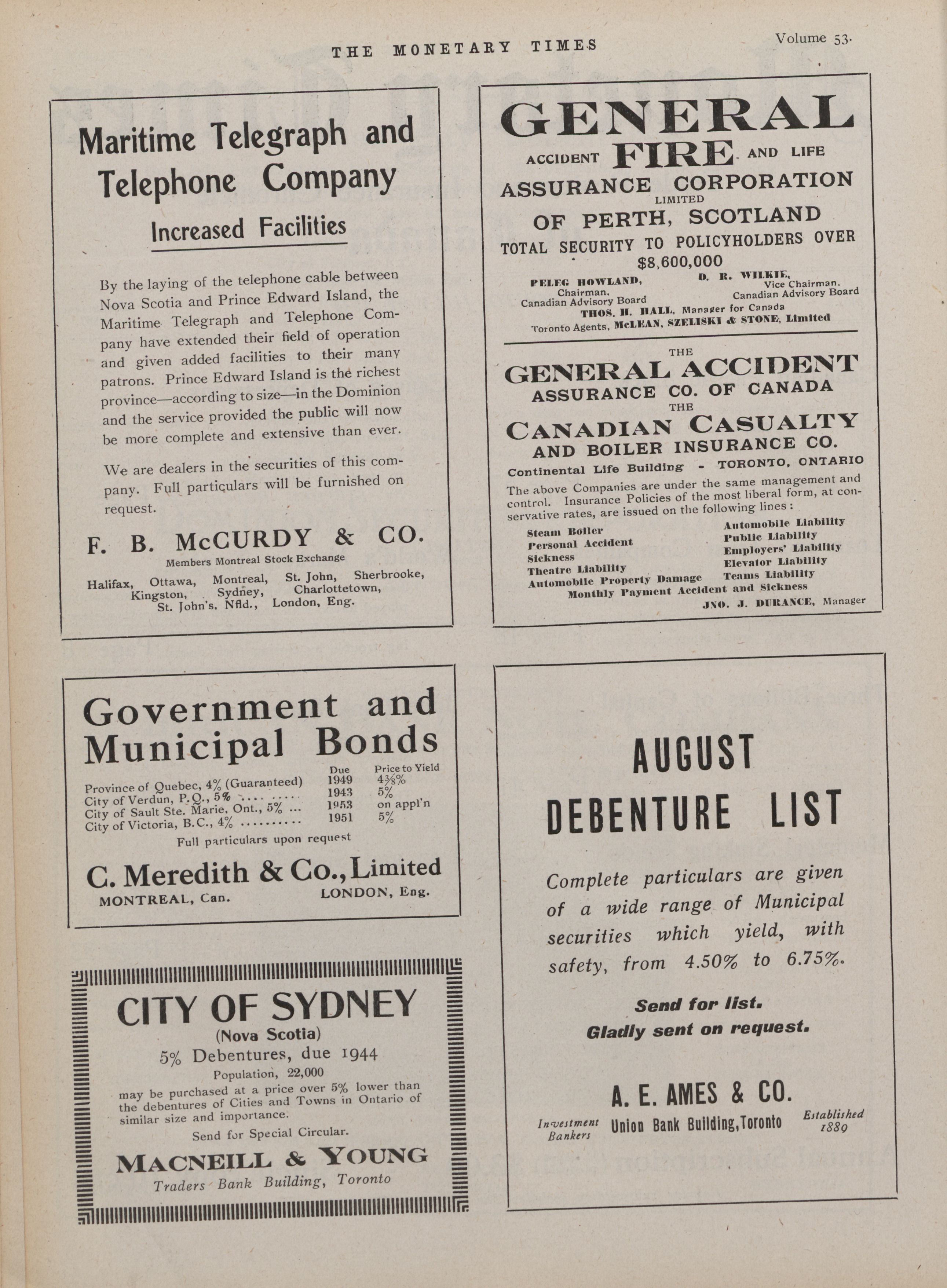 - The Monetary Times, trade review and insurance chronicle. : Volume 53 No. 5 (July 31, 1914)
