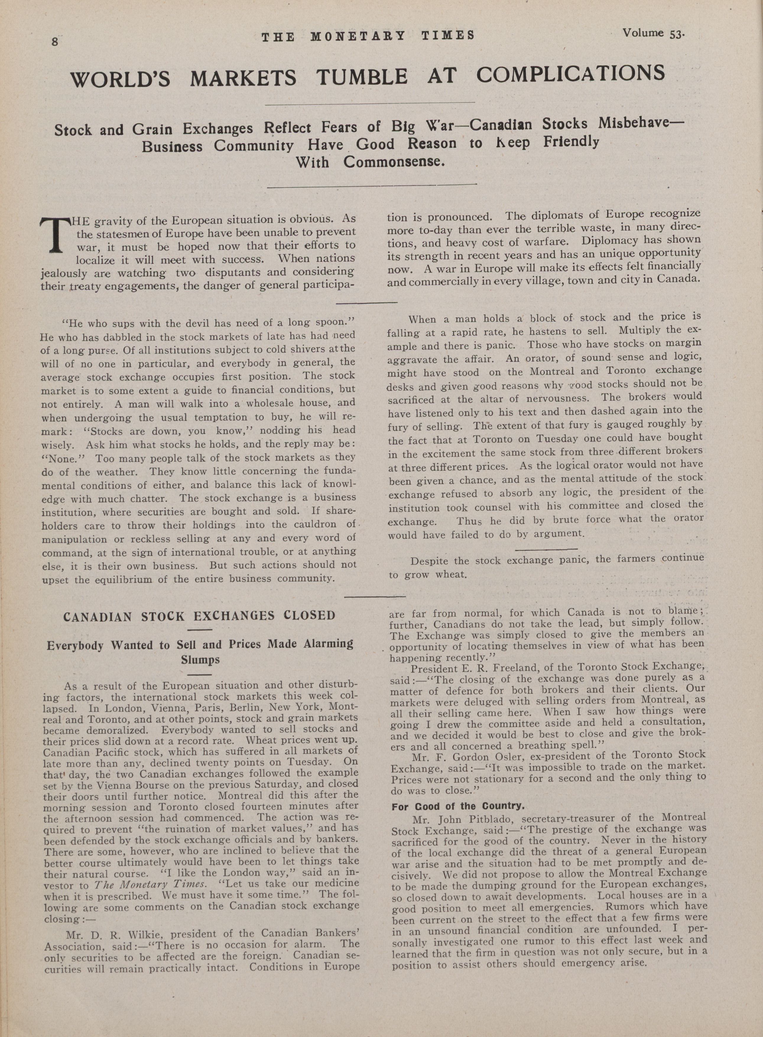 - The Monetary Times, trade review and insurance chronicle. : Volume 53 No. 5 (July 31, 1914)