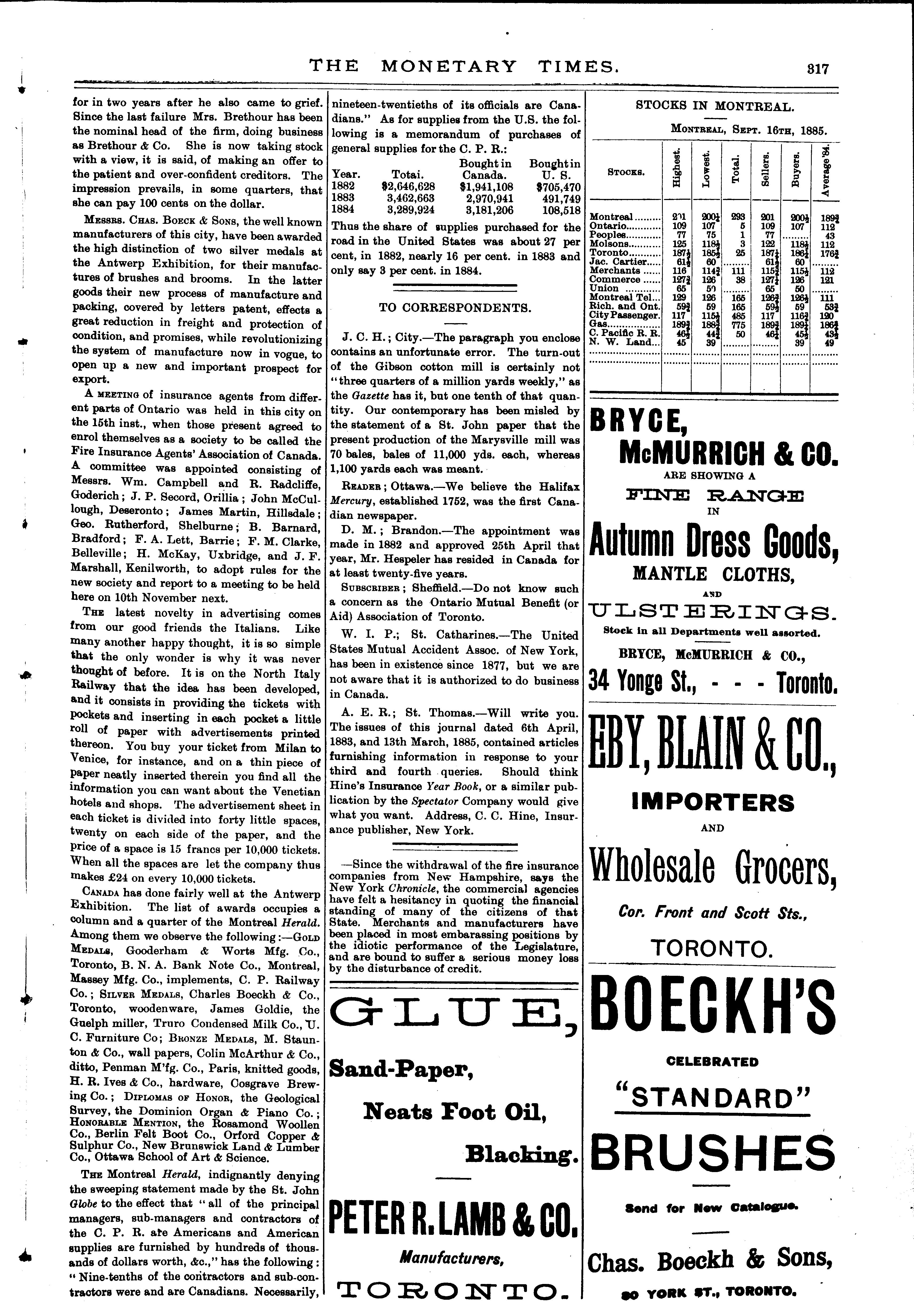 The monetary times, trade review and insurance chronicle : [Vol. 19, no. 12 (Sept. 18, 1885)]