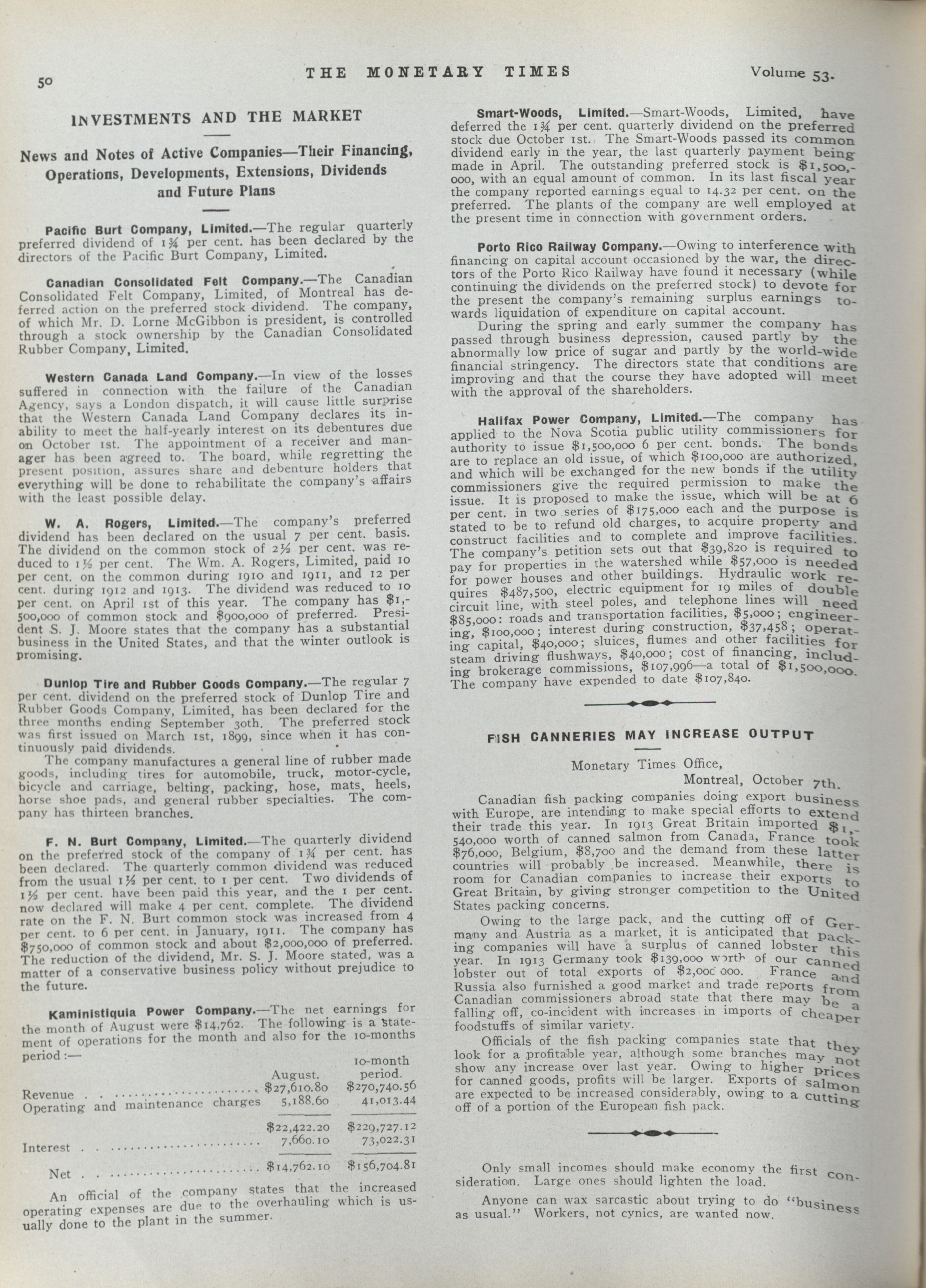 - The Monetary Times, trade review and insurance chronicle. : Volume 53 No. 15 (October 9, 1914)