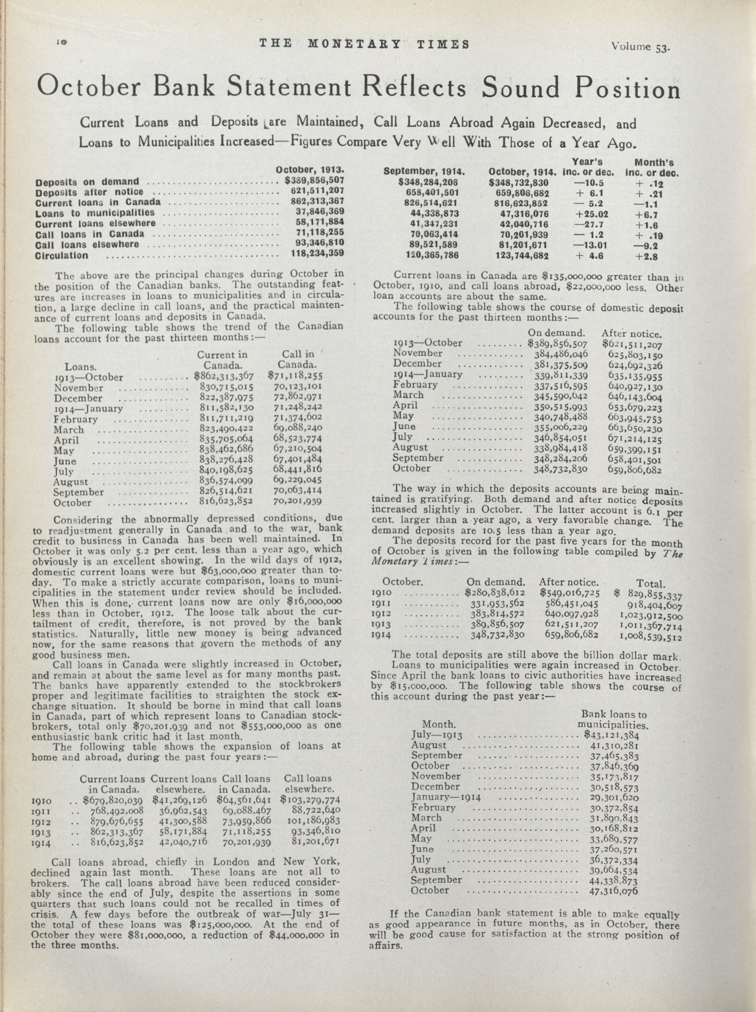 - The Monetary Times, trade review and insurance chronicle. : Volume 53 No. 23 (December 4, 1914)