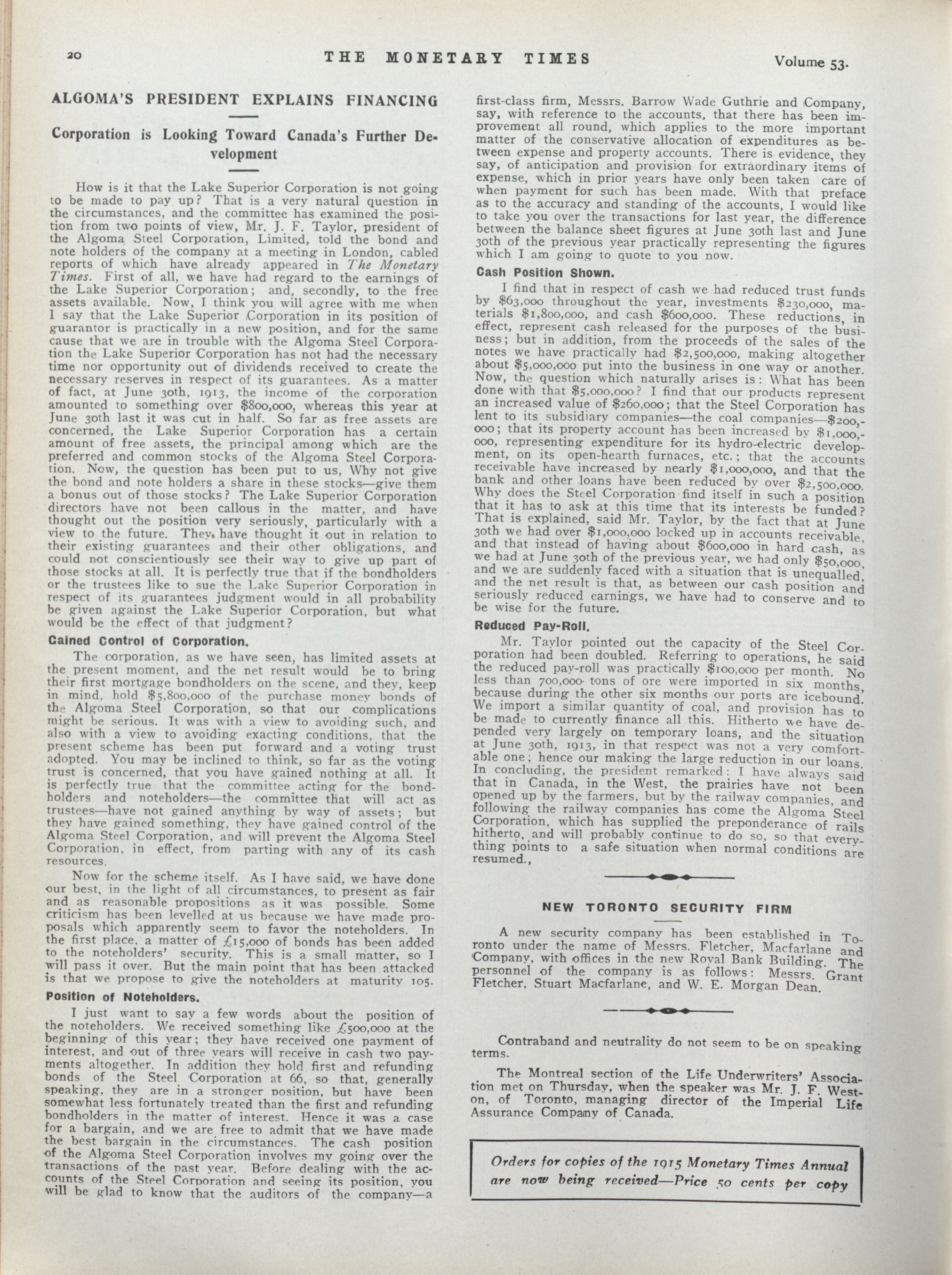 - The Monetary Times, trade review and insurance chronicle. : Volume 53 No. 23 (December 4, 1914)