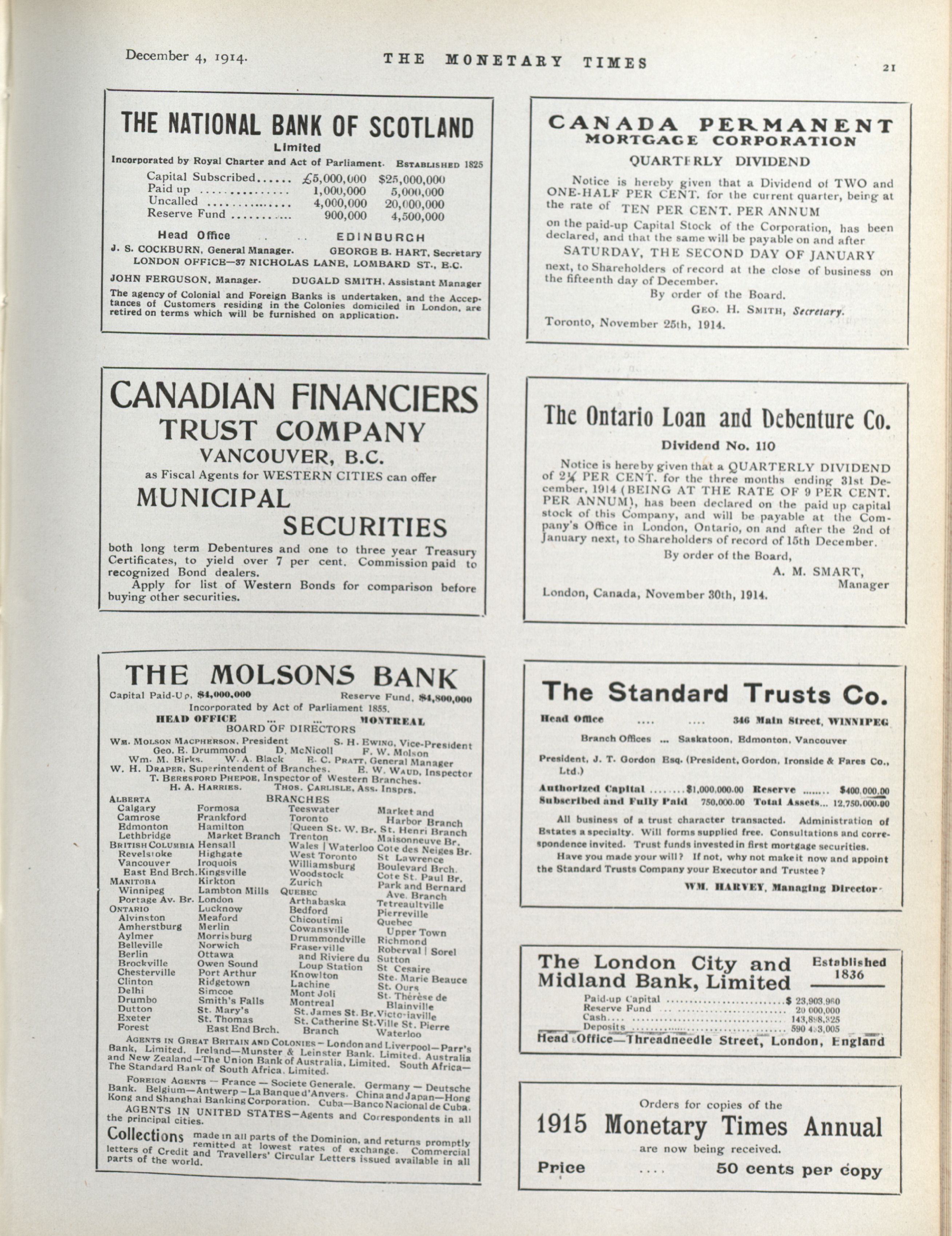 - The Monetary Times, trade review and insurance chronicle. : Volume 53 No. 23 (December 4, 1914)