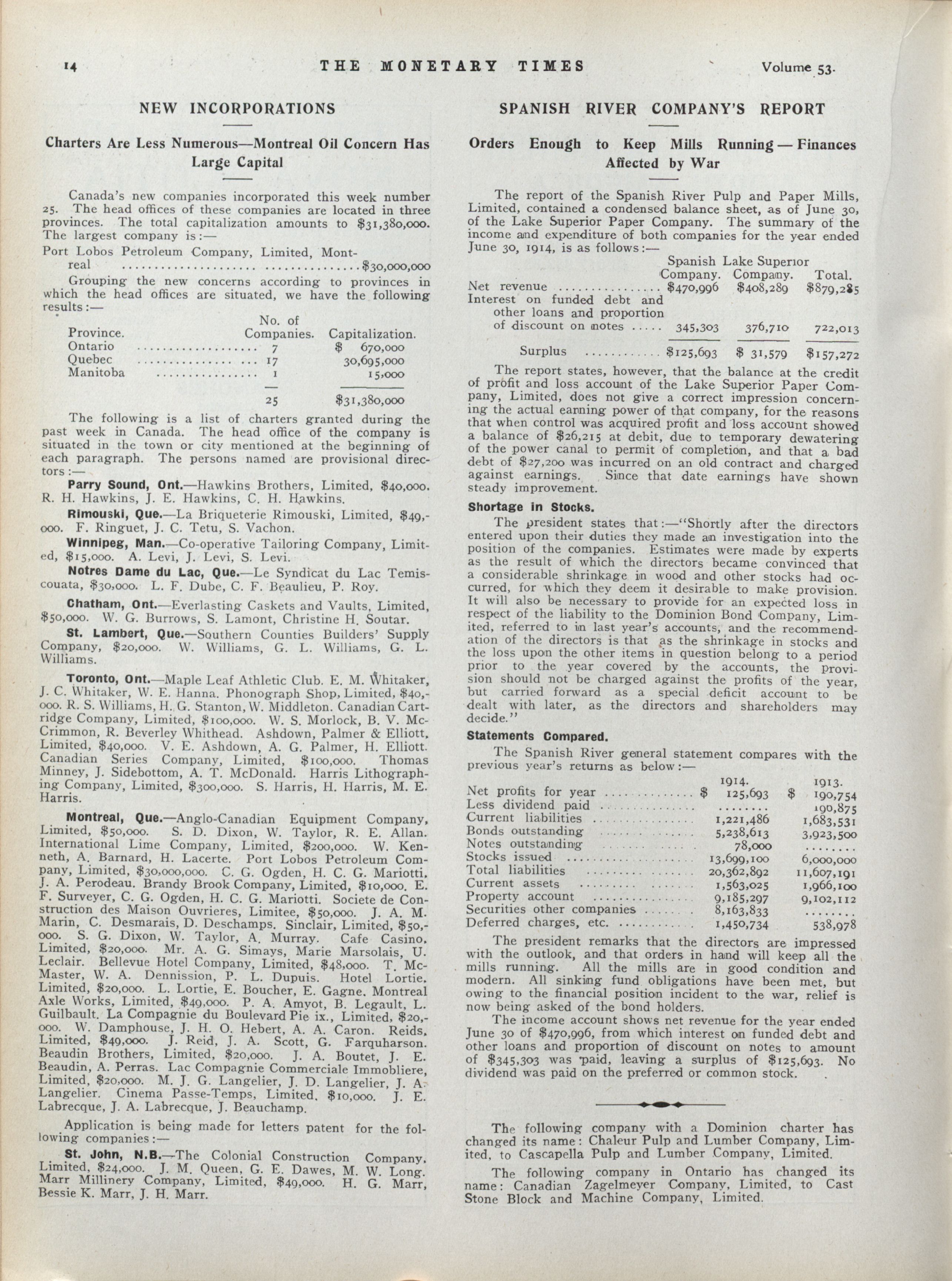 The Monetary Times, trade review and insurance chronicle. : Volume 53 No. 25 (December 18, 1914)