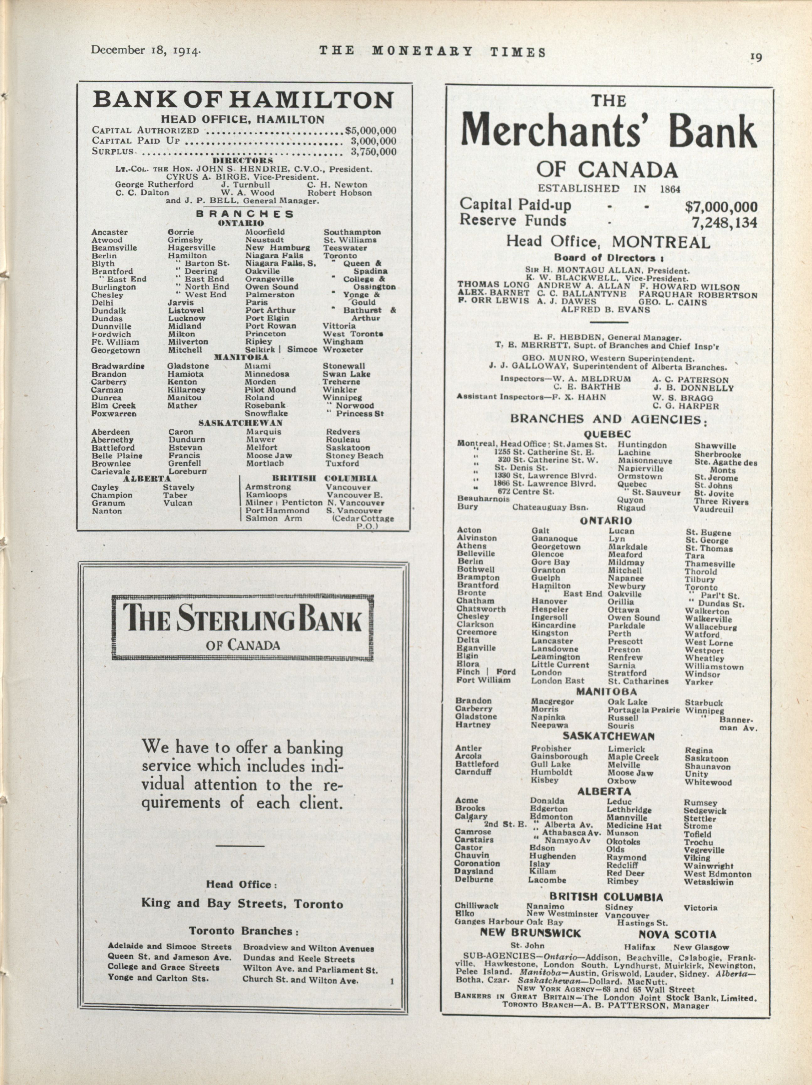 - The Monetary Times, trade review and insurance chronicle. : Volume 53 No. 25 (December 18, 1914)