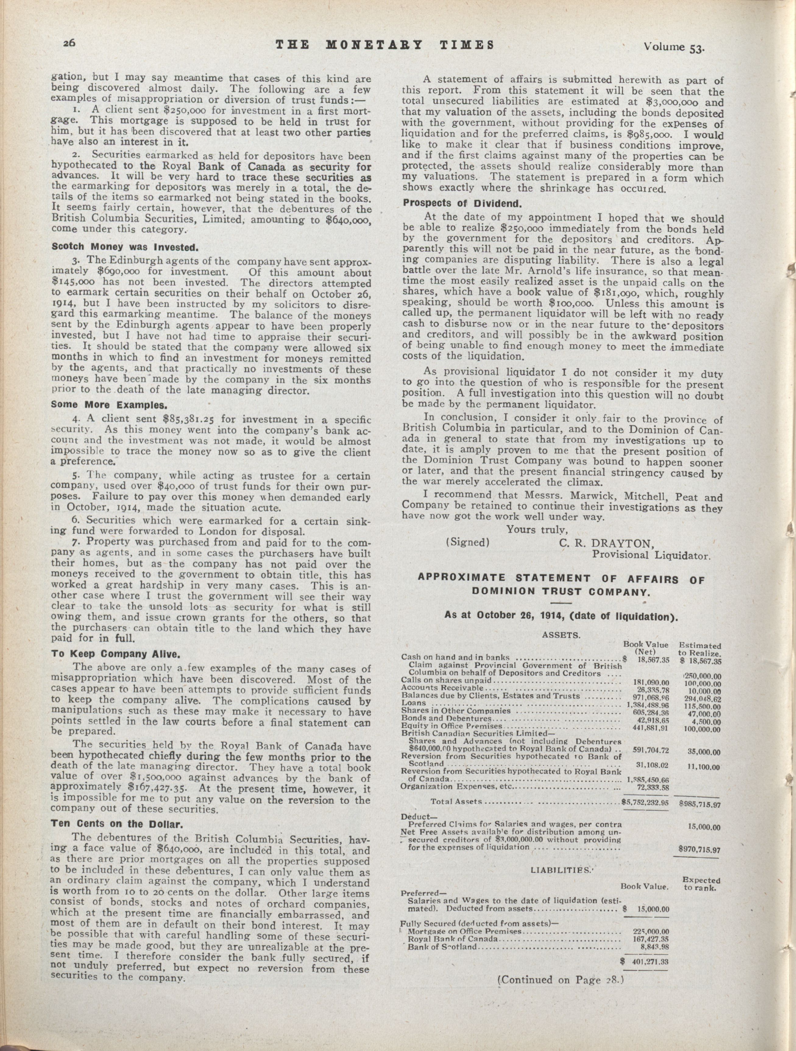 - The Monetary Times, trade review and insurance chronicle. : Volume 53 No. 25 (December 18, 1914)