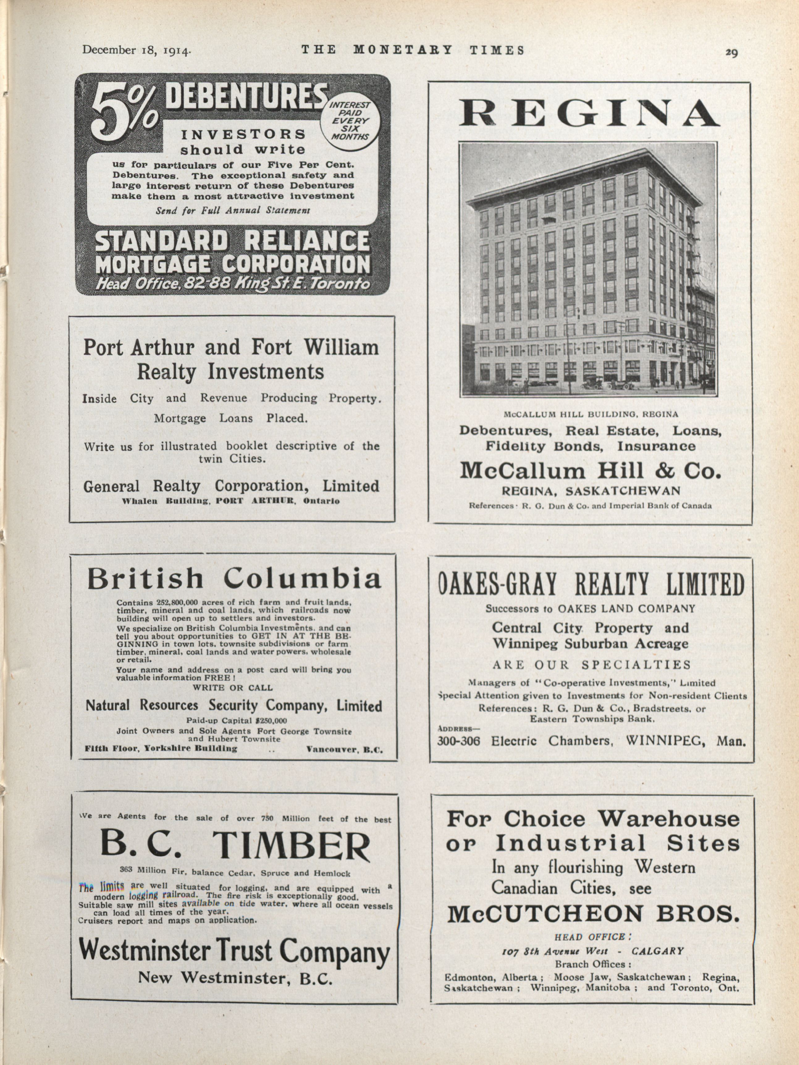 - The Monetary Times, trade review and insurance chronicle. : Volume 53 No. 25 (December 18, 1914)