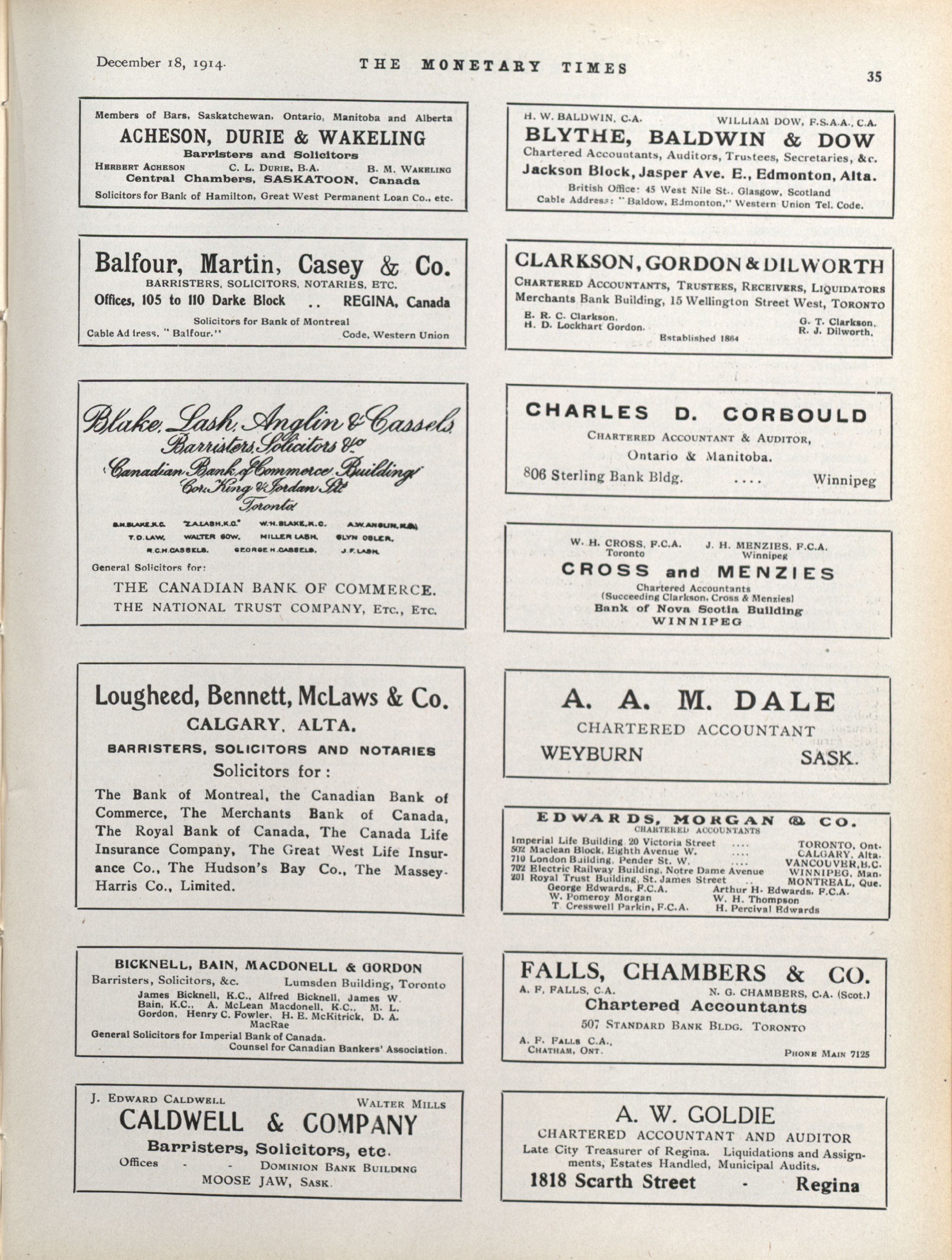 - The Monetary Times, trade review and insurance chronicle. : Volume 53 No. 25 (December 18, 1914)