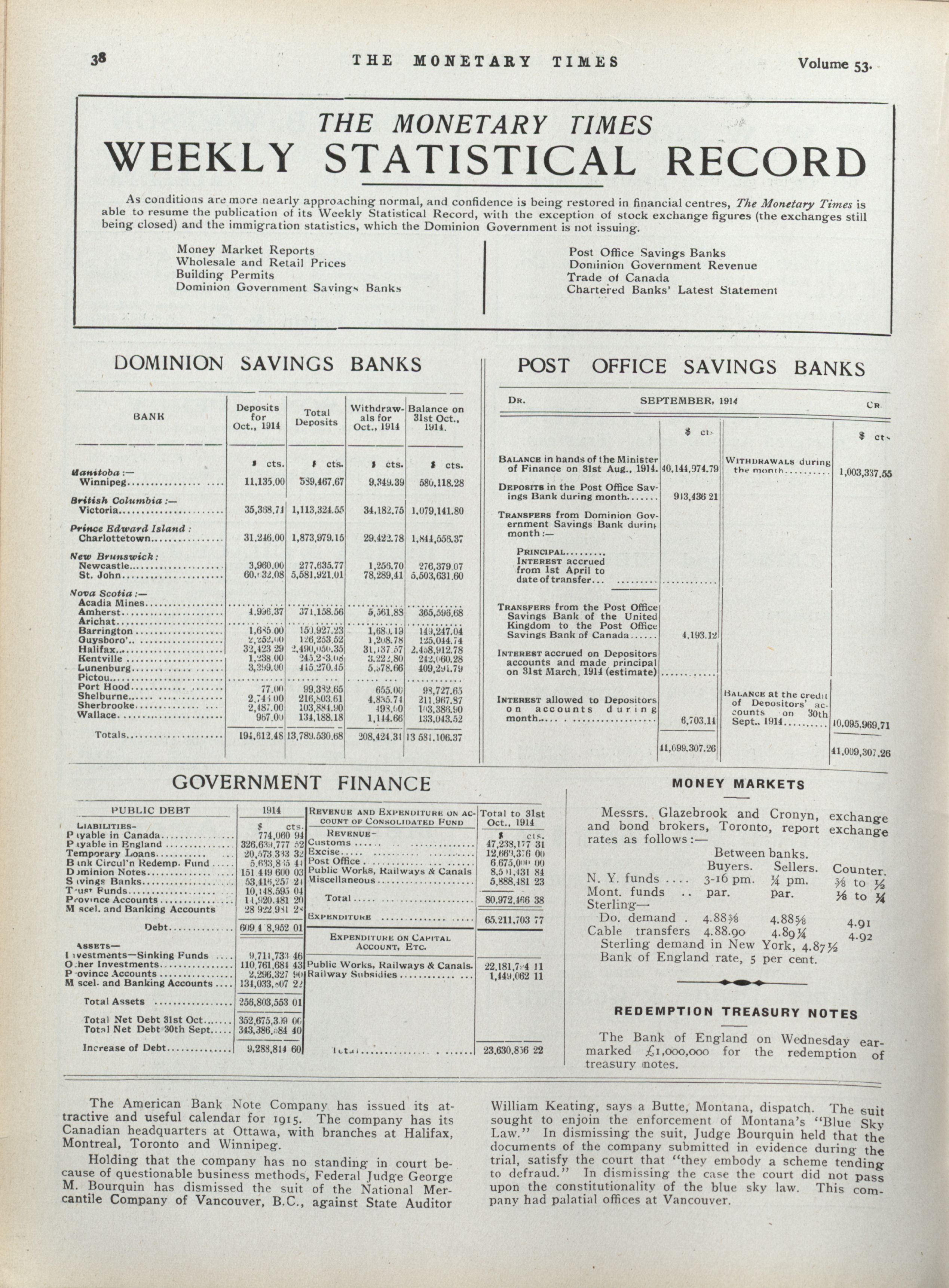 The monetary times, trade review and insurance chronicle : Volume 53 No. 25 (December 18, 1914)