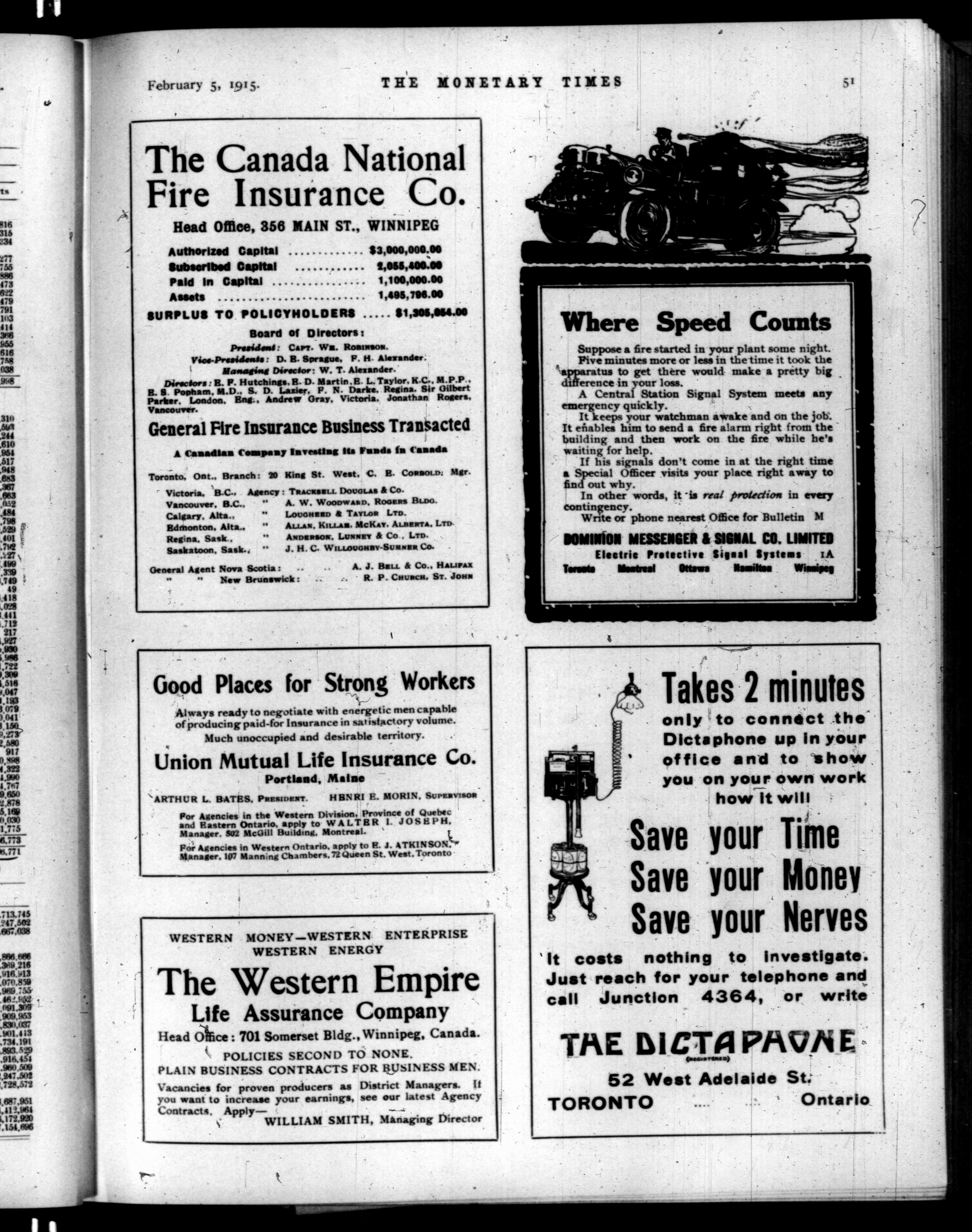 The monetary times, trade review and insurance chronicle : Volume 54, No. 6 (February 5, 1915)