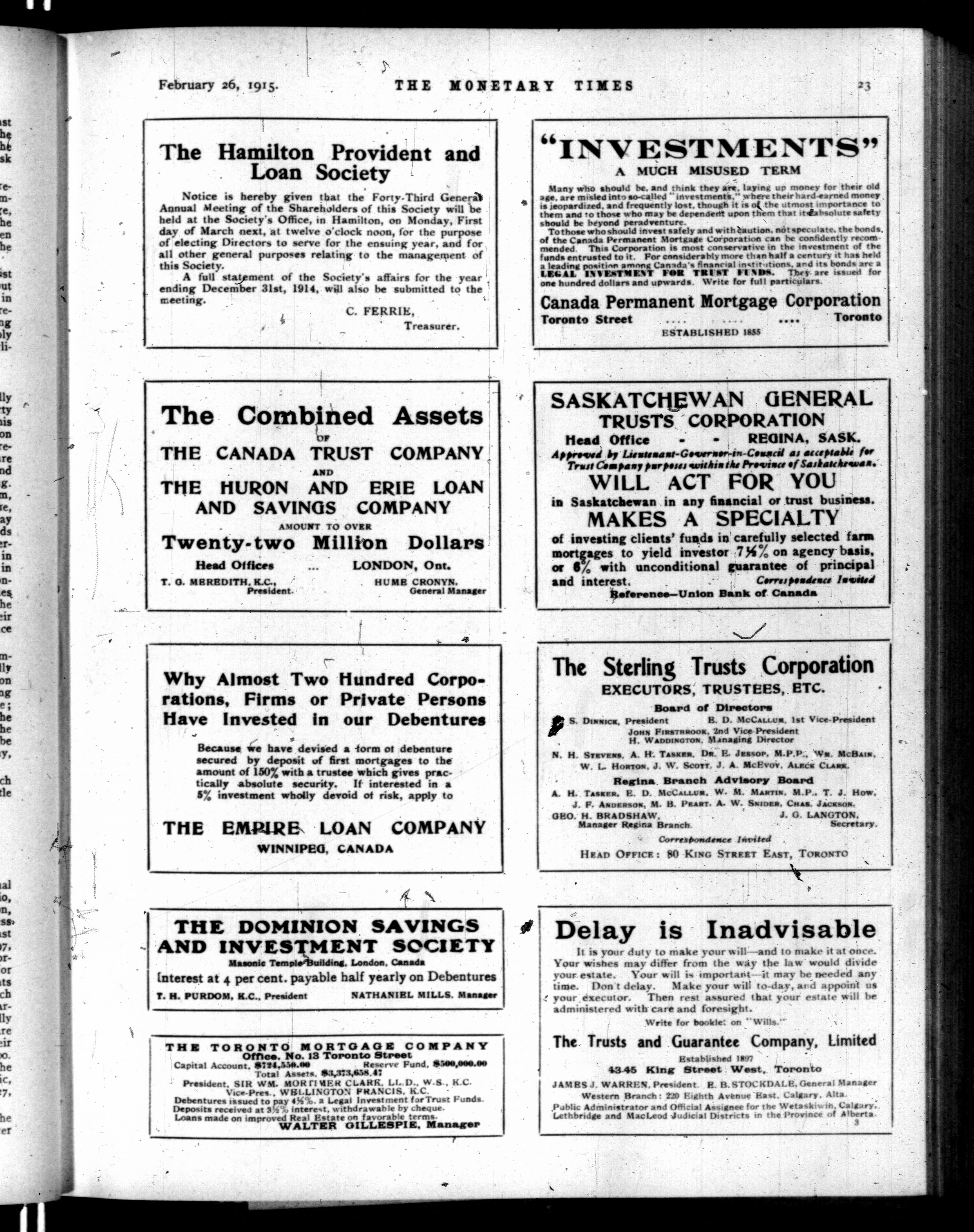 The monetary times, trade review and insurance chronicle : Volume 54, No. 9 (February 26, 1915)
