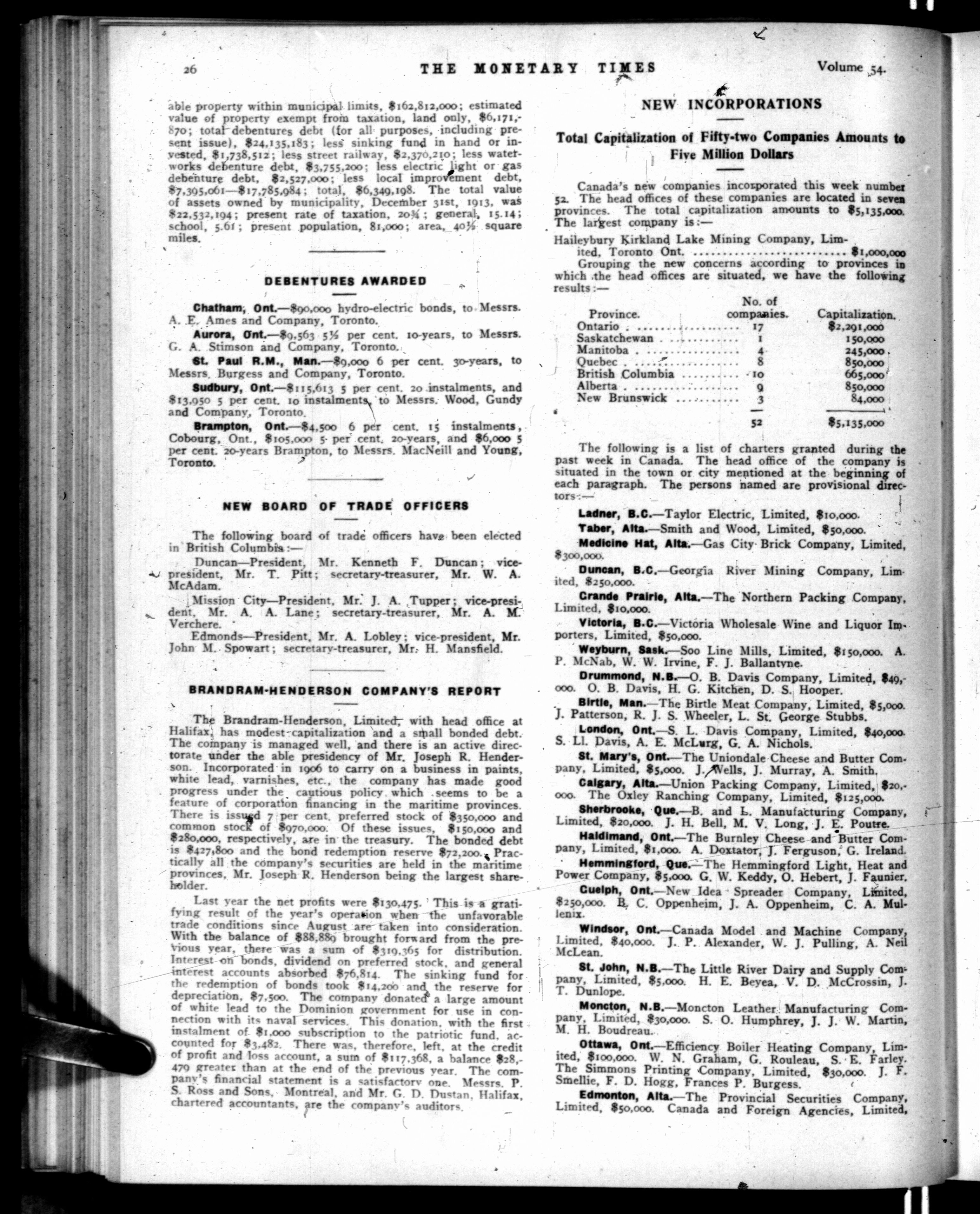 The monetary times, trade review and insurance chronicle : Volume 54, No. 9 (February 26, 1915)