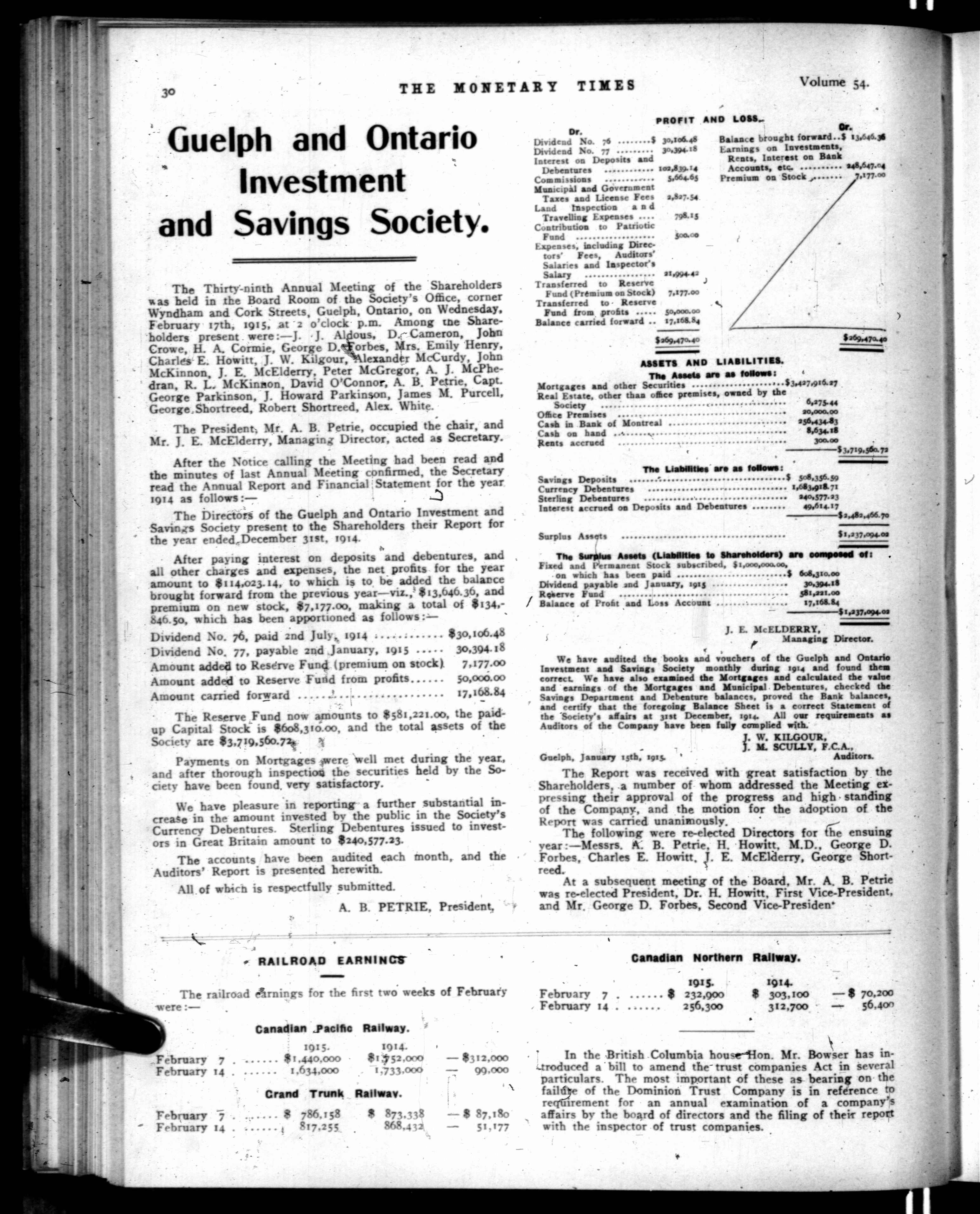 The monetary times, trade review and insurance chronicle : Volume 54, No. 9 (February 26, 1915)