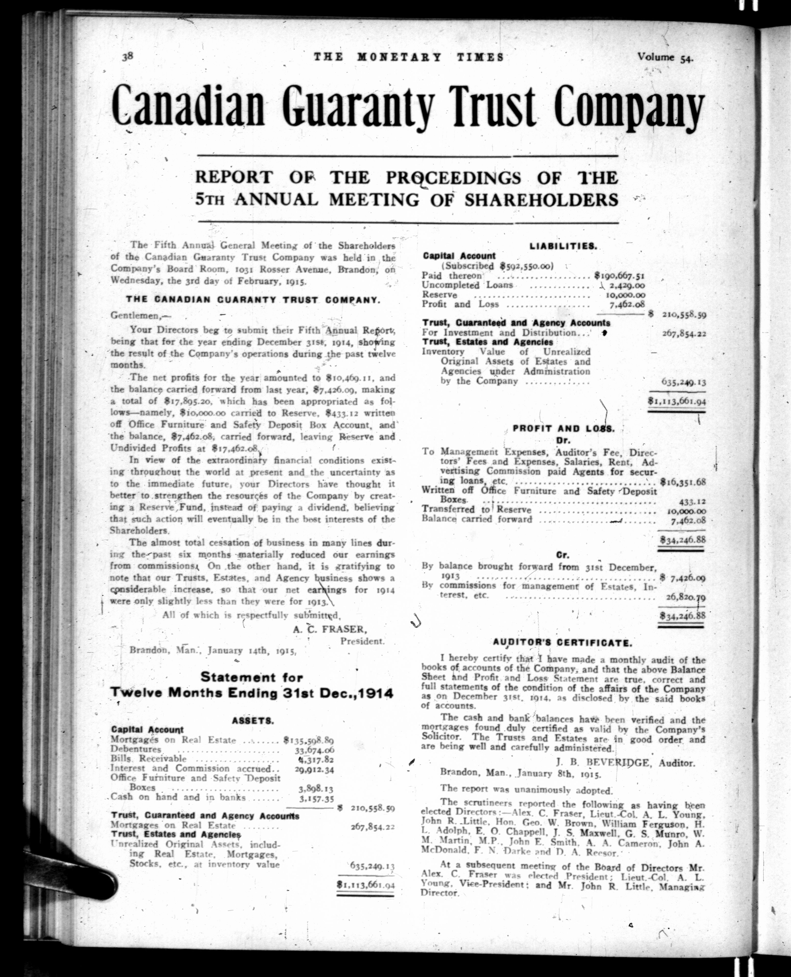 The monetary times, trade review and insurance chronicle : Volume 54, No. 9 (February 26, 1915)