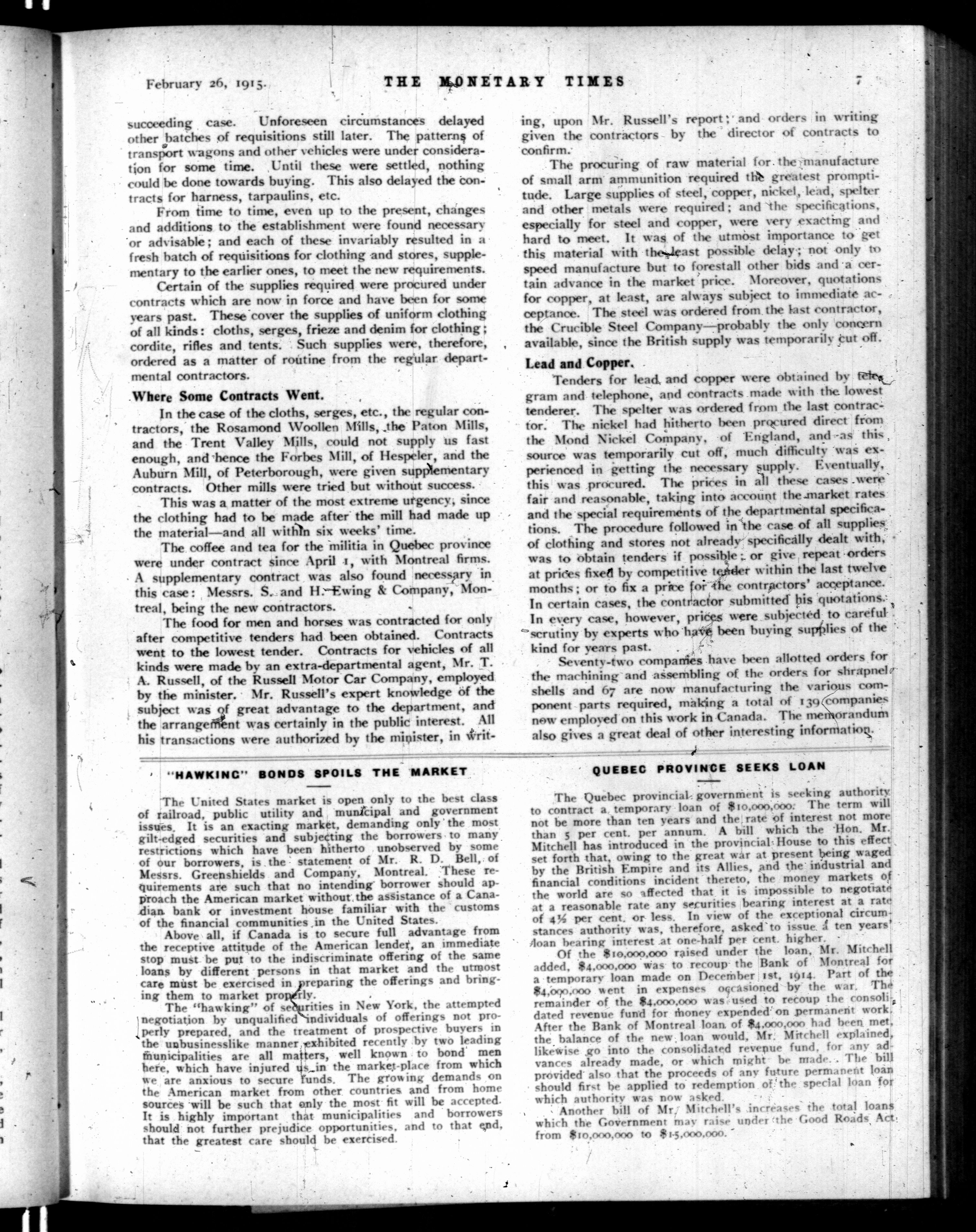 The monetary times, trade review and insurance chronicle : Volume 54, No. 9 (February 26, 1915)