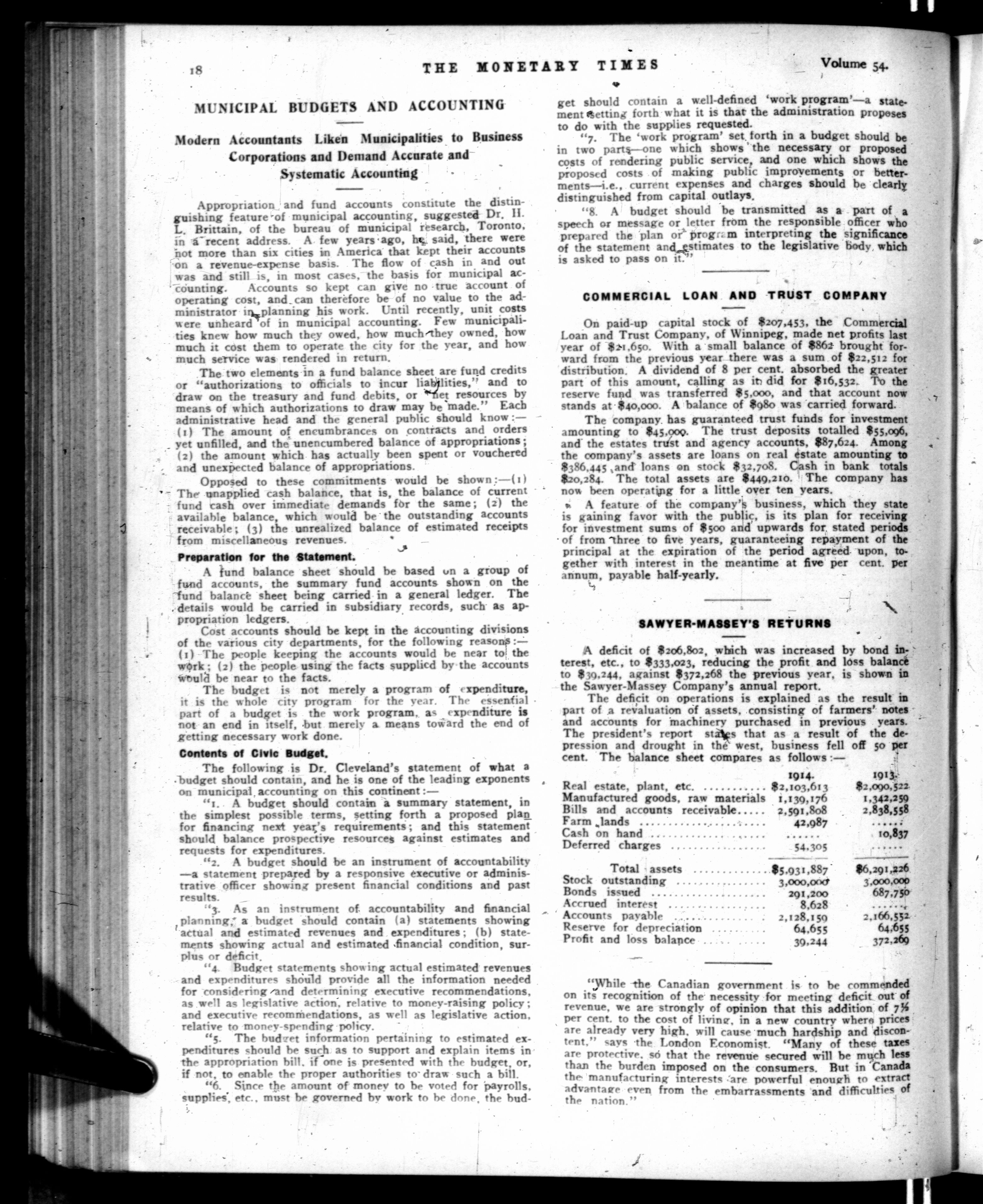 The monetary times, trade review and insurance chronicle : Volume 54, No. 13 (March 26, 1915)