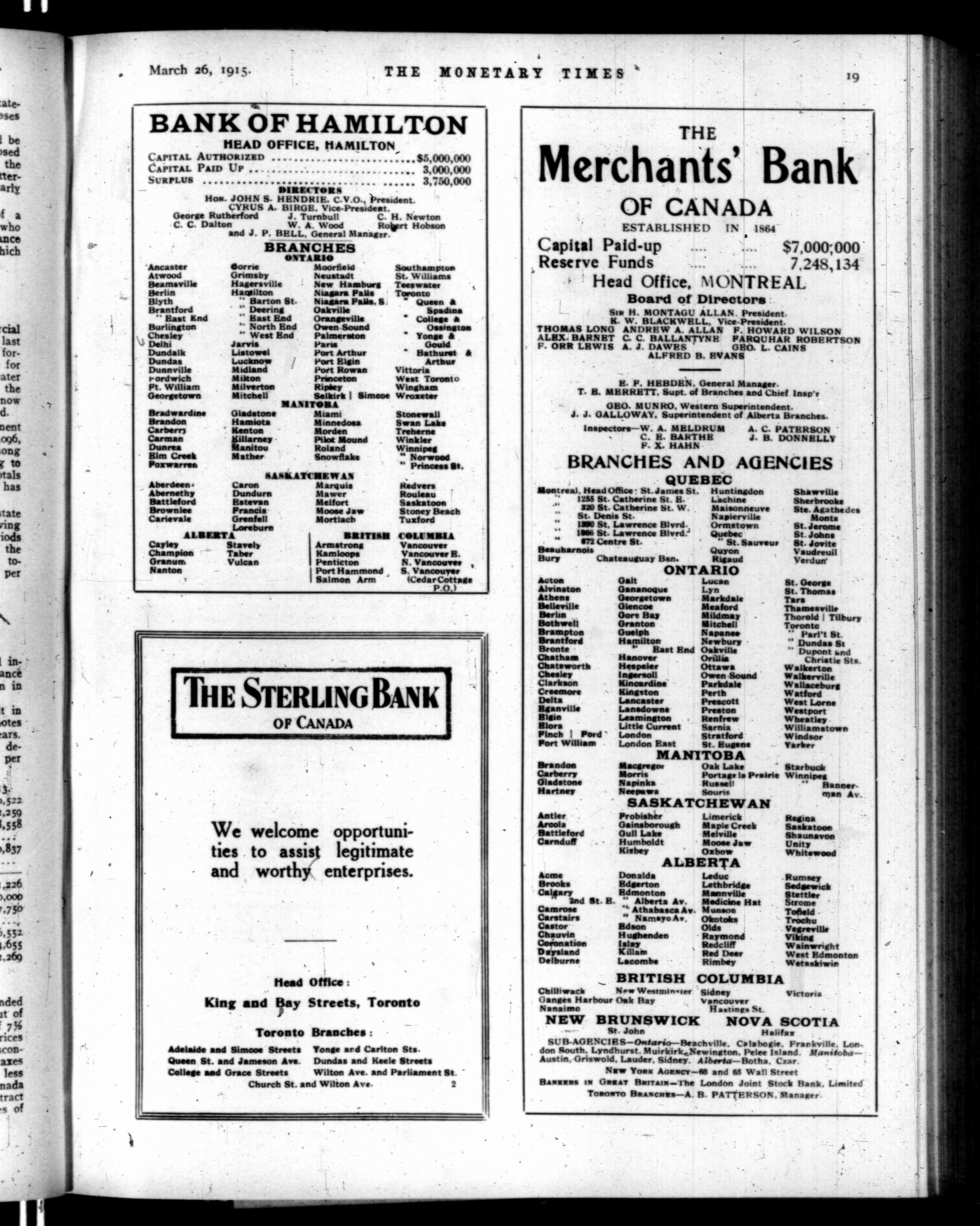 The monetary times, trade review and insurance chronicle : Volume 54, No. 13 (March 26, 1915)