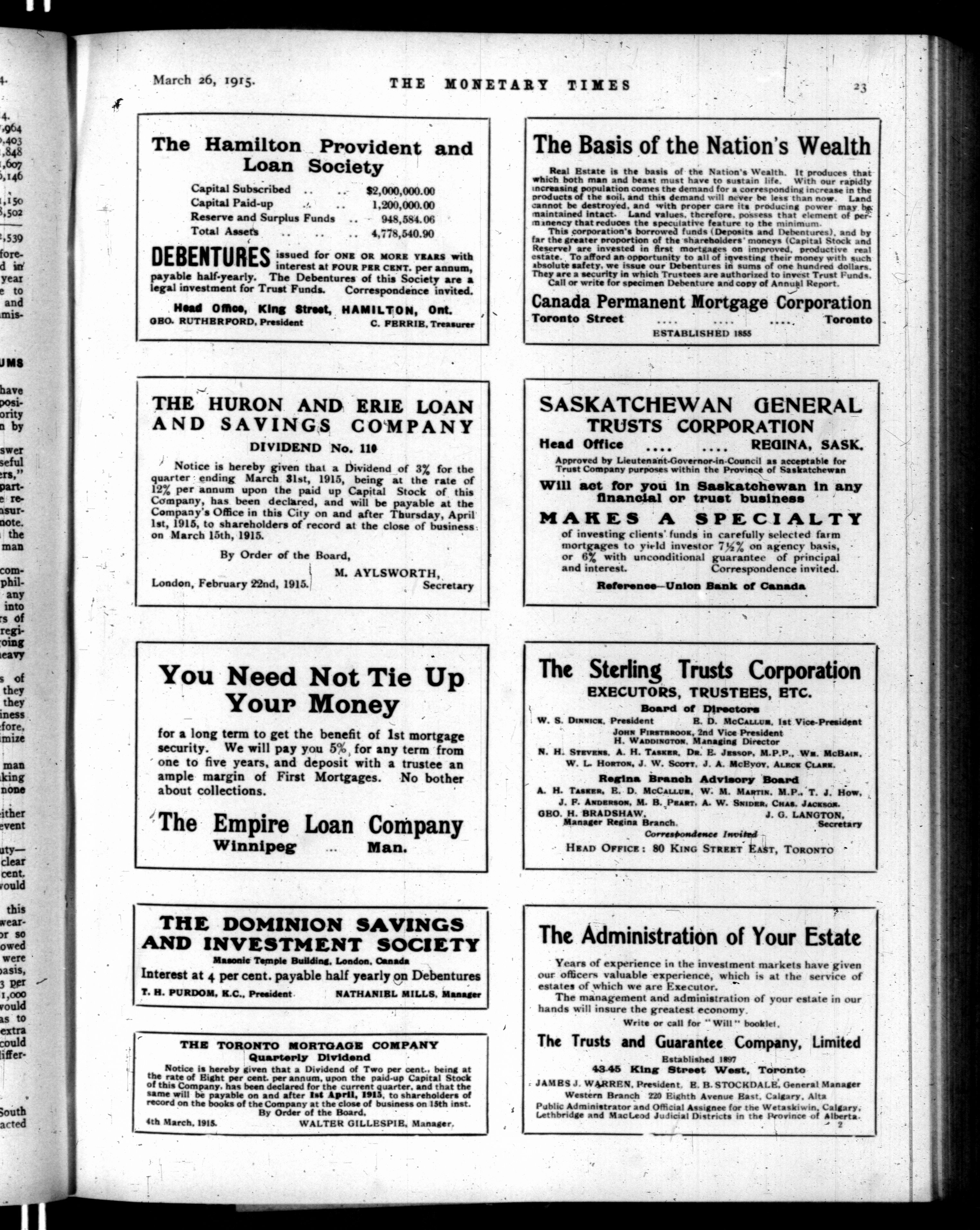 The monetary times, trade review and insurance chronicle : Volume 54, No. 13 (March 26, 1915)