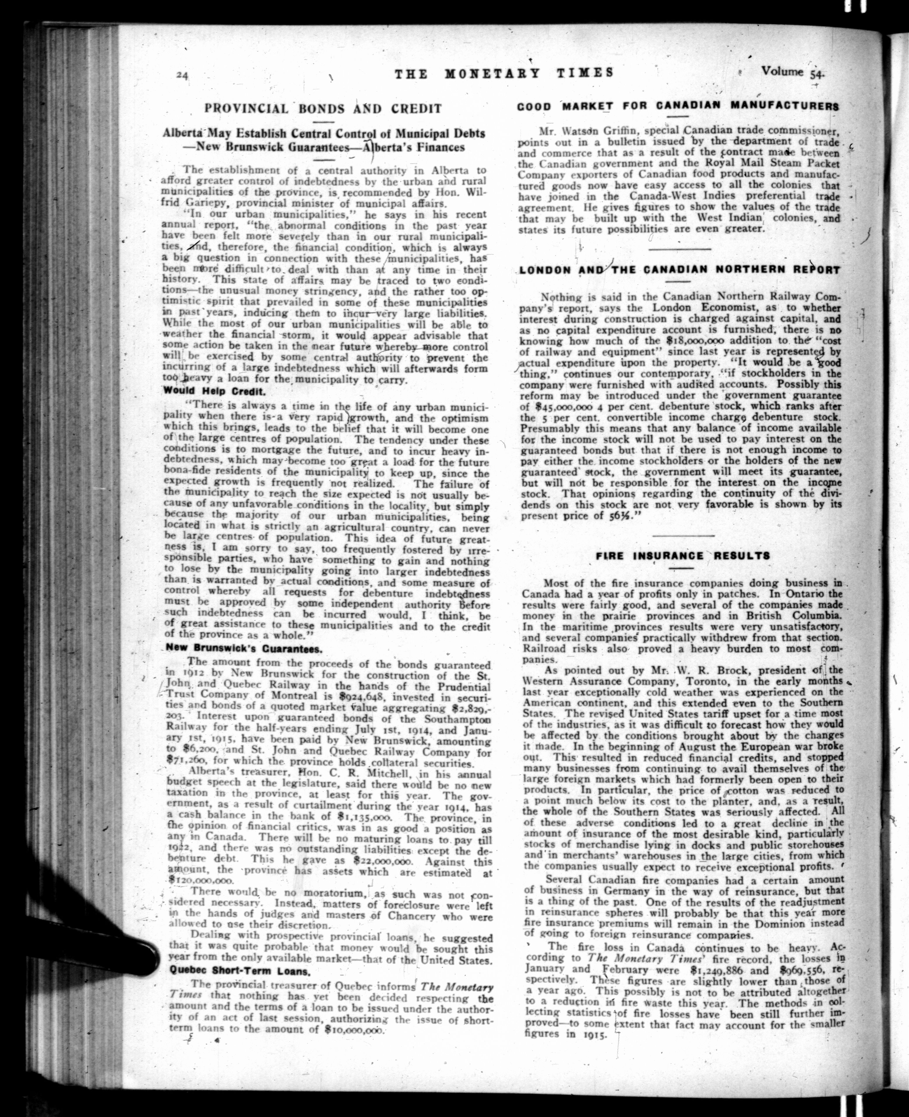 The monetary times, trade review and insurance chronicle : Volume 54, No. 13 (March 26, 1915)