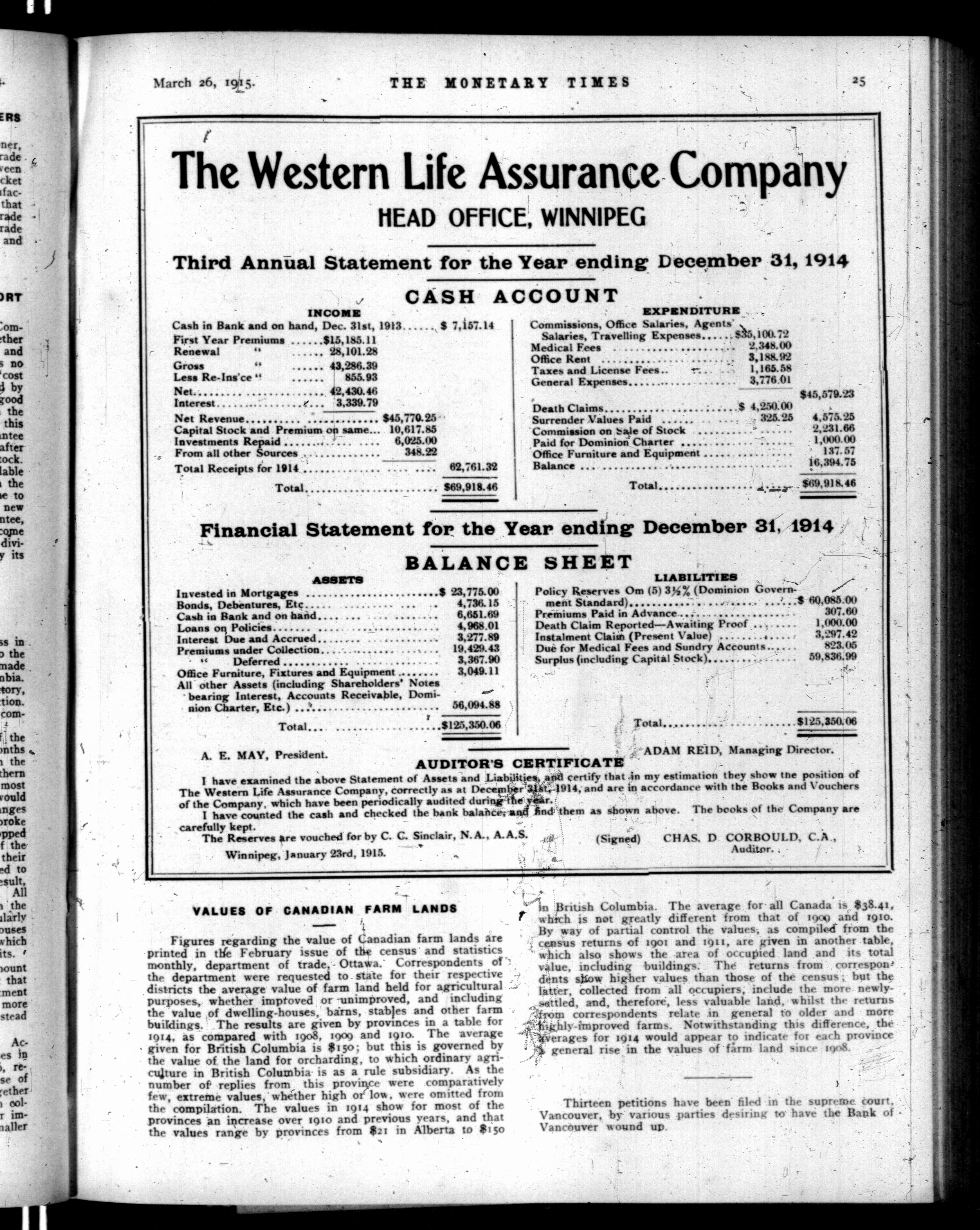 The monetary times, trade review and insurance chronicle : Volume 54, No. 13 (March 26, 1915)
