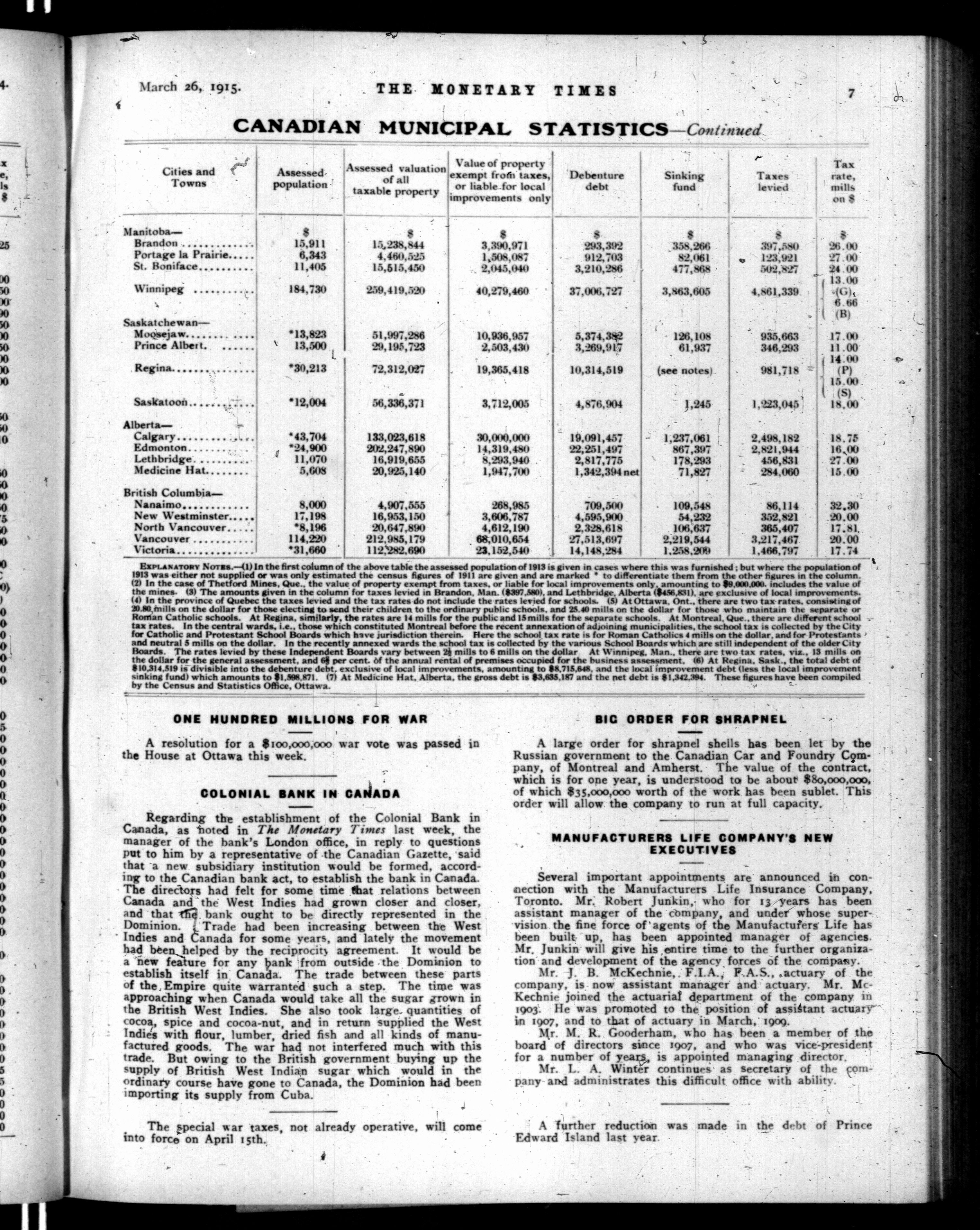 The monetary times, trade review and insurance chronicle : Volume 54, No. 13 (March 26, 1915)