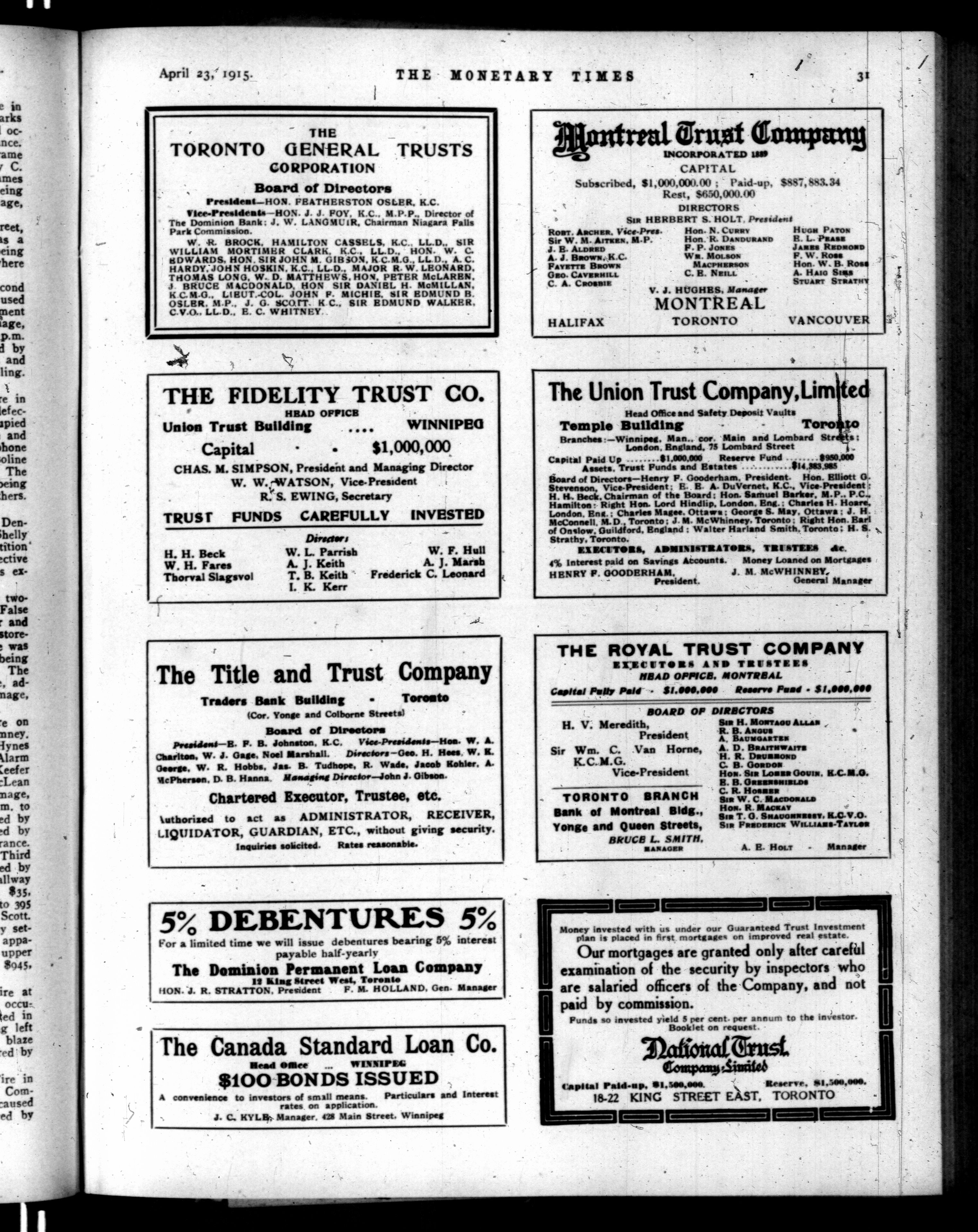 The monetary times, trade review and insurance chronicle : Volume 54, No. 17 (April 23, 1915)