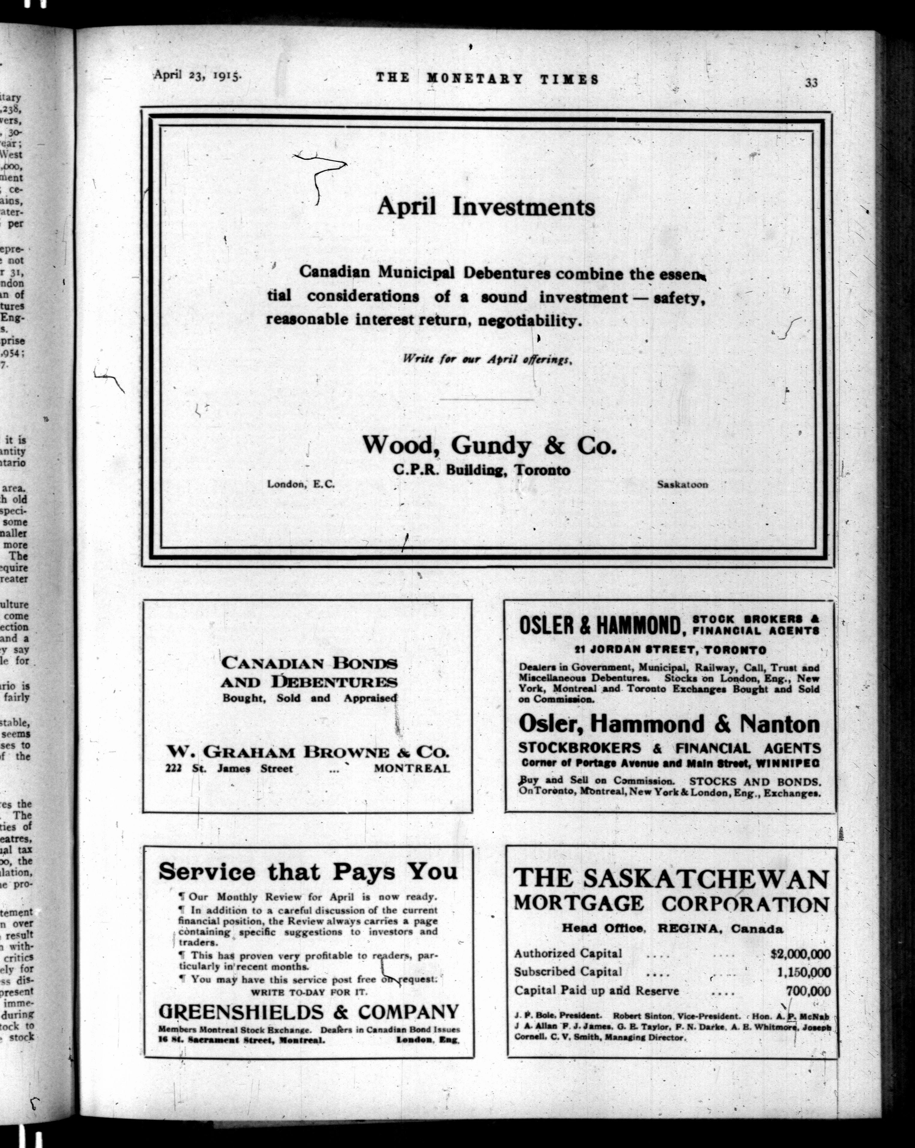 The monetary times, trade review and insurance chronicle : Volume 54, No. 17 (April 23, 1915)