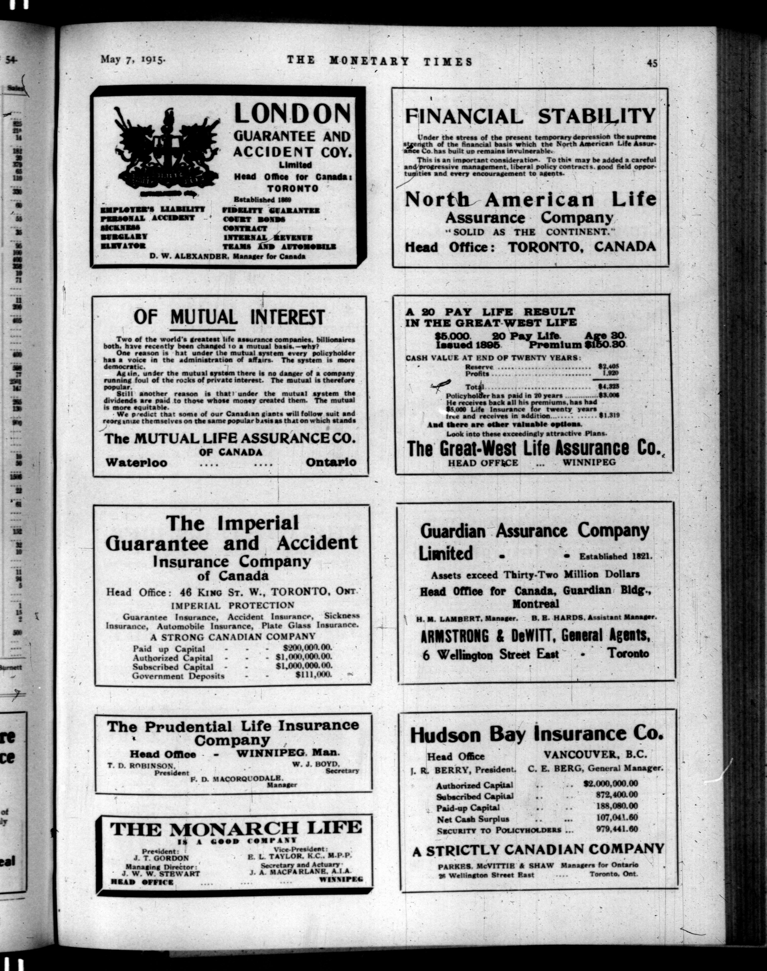 The monetary times, trade review and insurance chronicle : Volume 54, No. 19 (May 7, 1915)