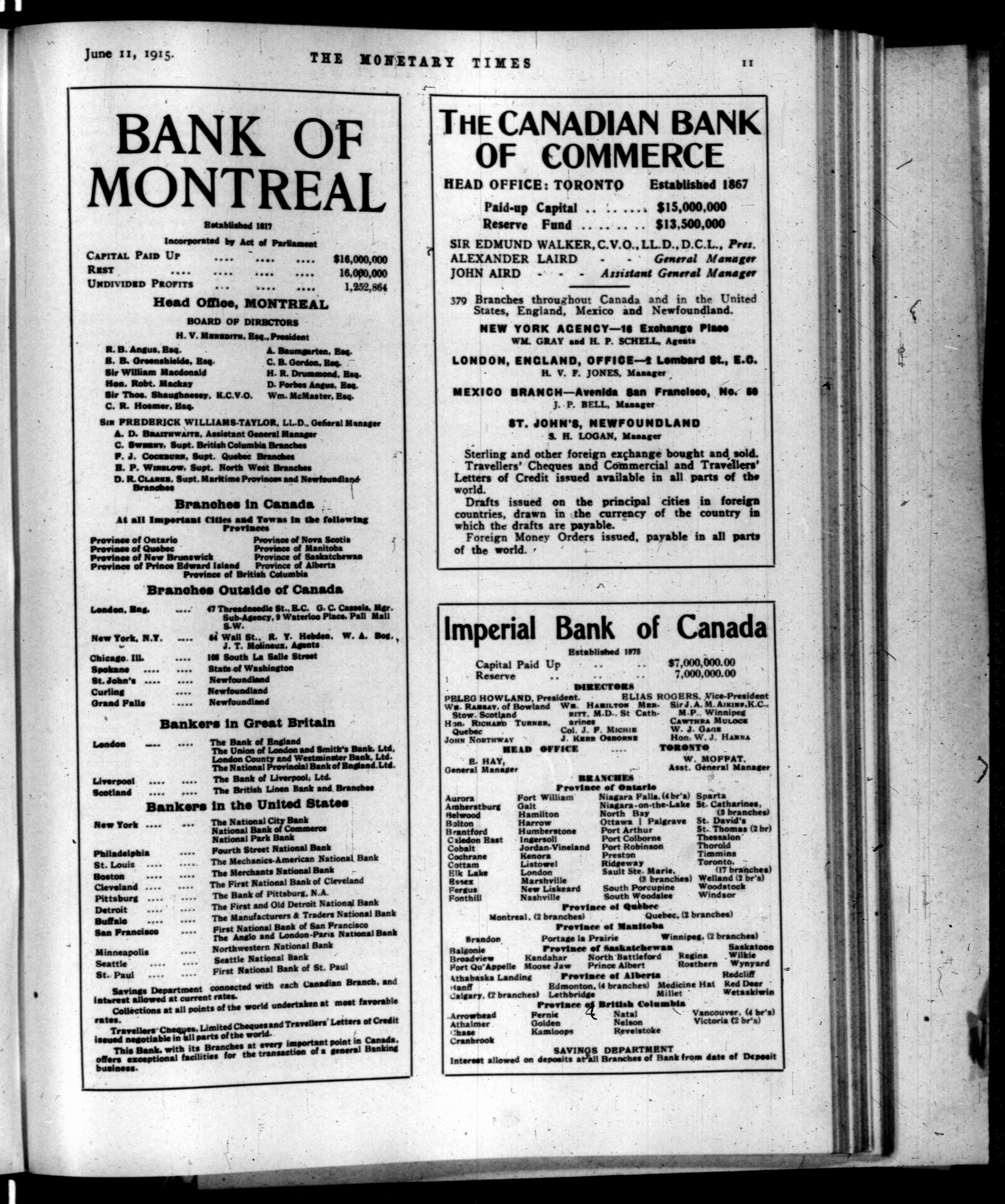 The monetary times, trade review and insurance chronicle : Volume 54, No. 24 (June 11, 1915)