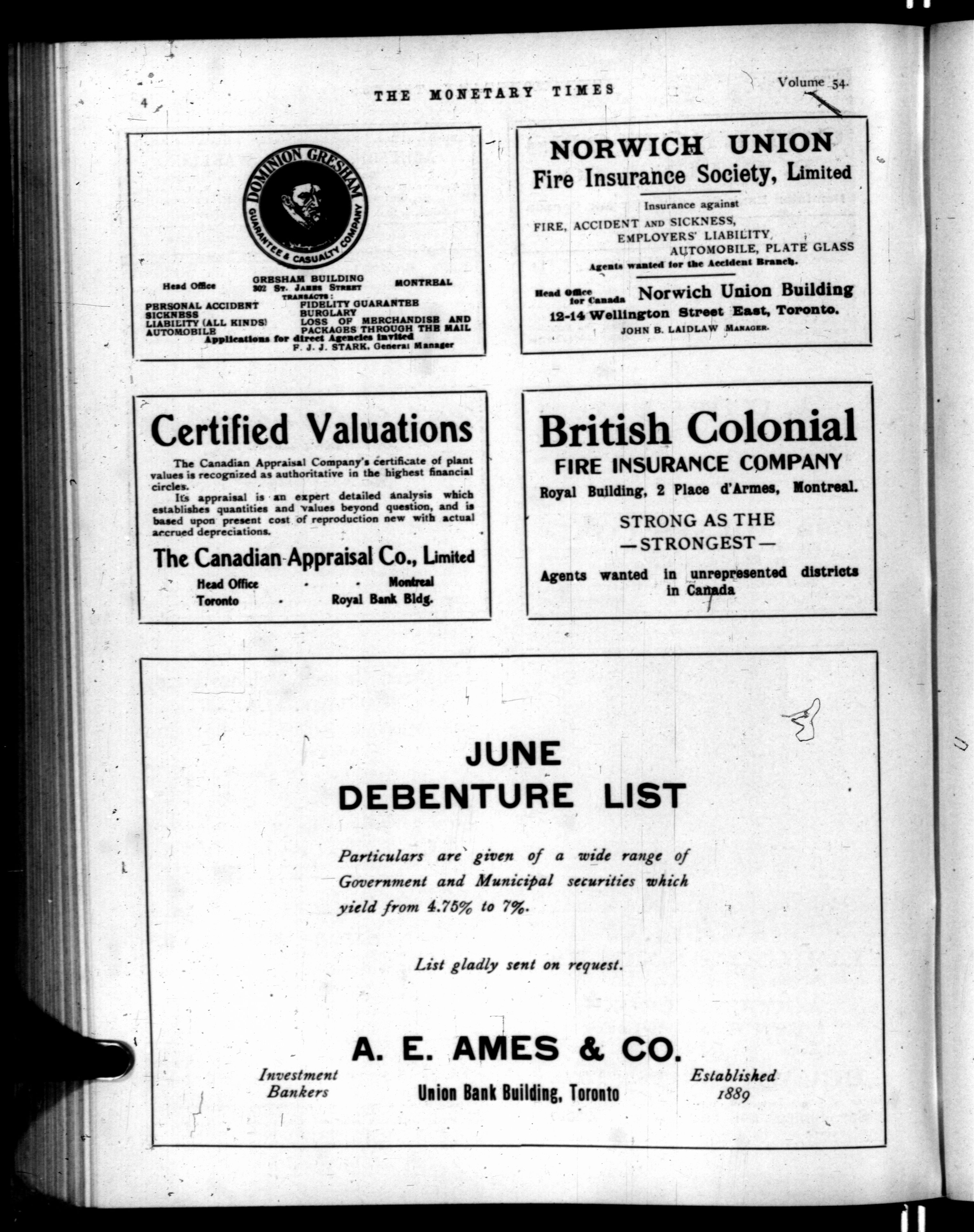 The monetary times, trade review and insurance chronicle : Volume 54, No. 24 (June 11, 1915)