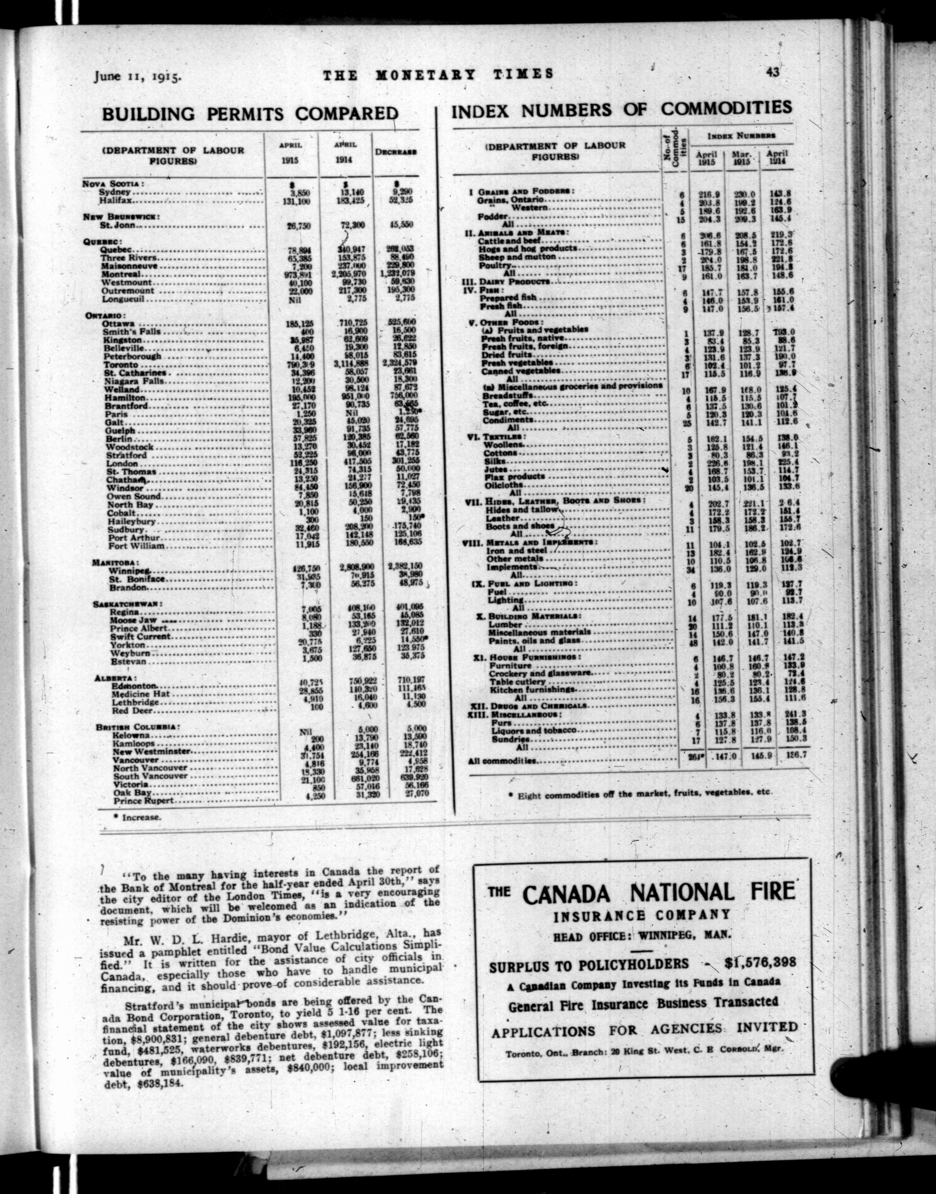 The monetary times, trade review and insurance chronicle : Volume 54, No. 24 (June 11, 1915)