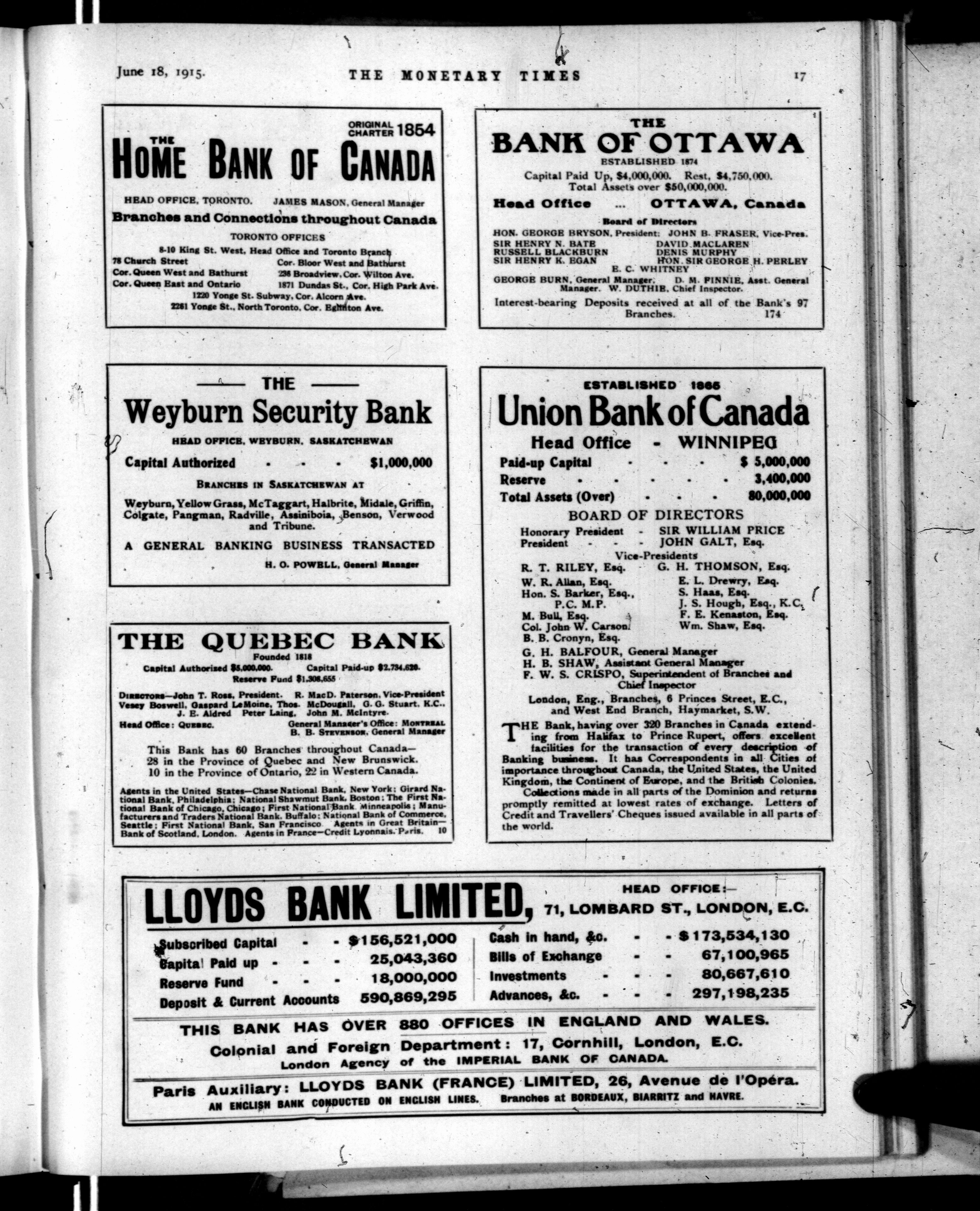 The monetary times, trade review and insurance chronicle : Volume 54, No. 25 (June 18, 1915)