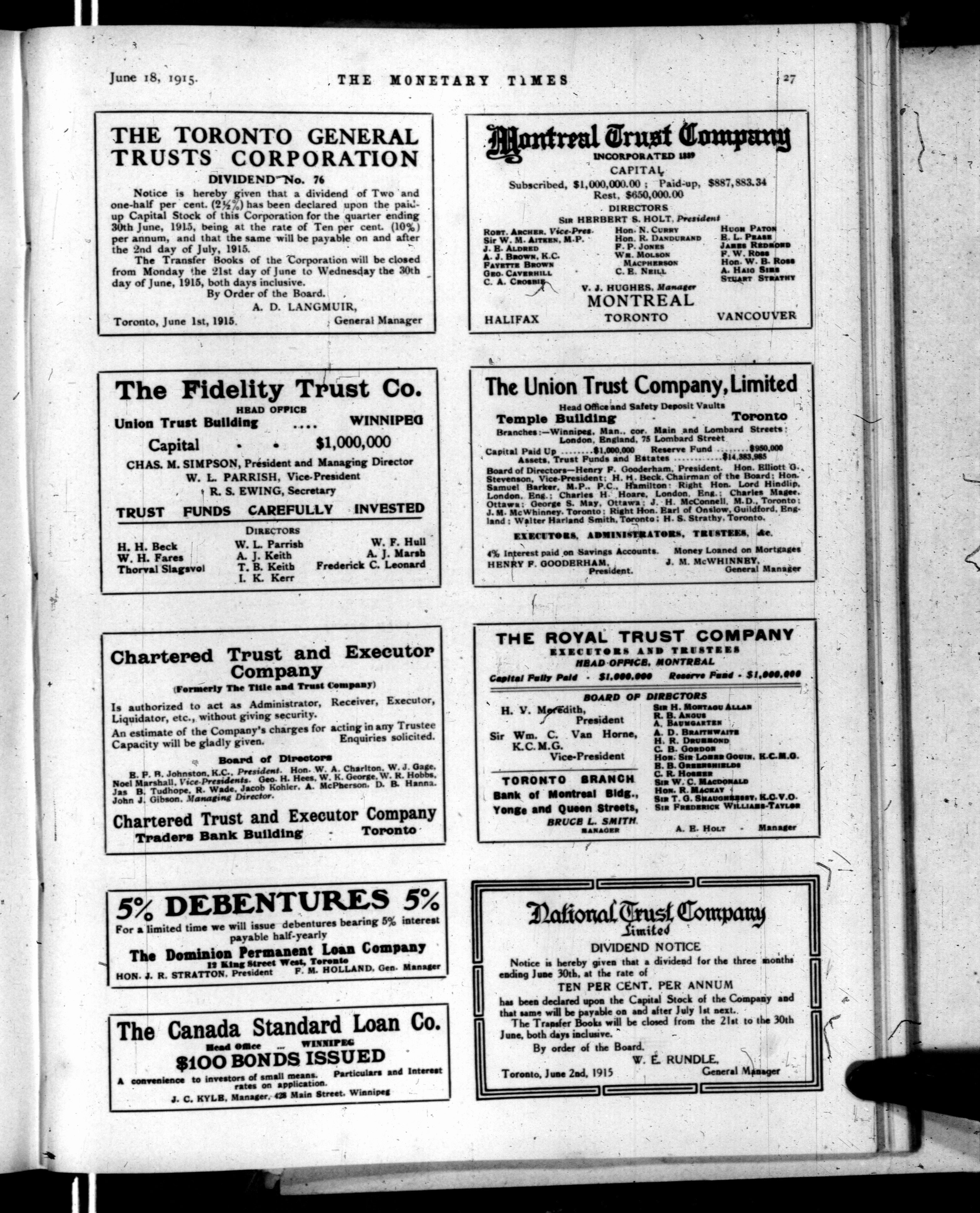 The monetary times, trade review and insurance chronicle : Volume 54, No. 25 (June 18, 1915)