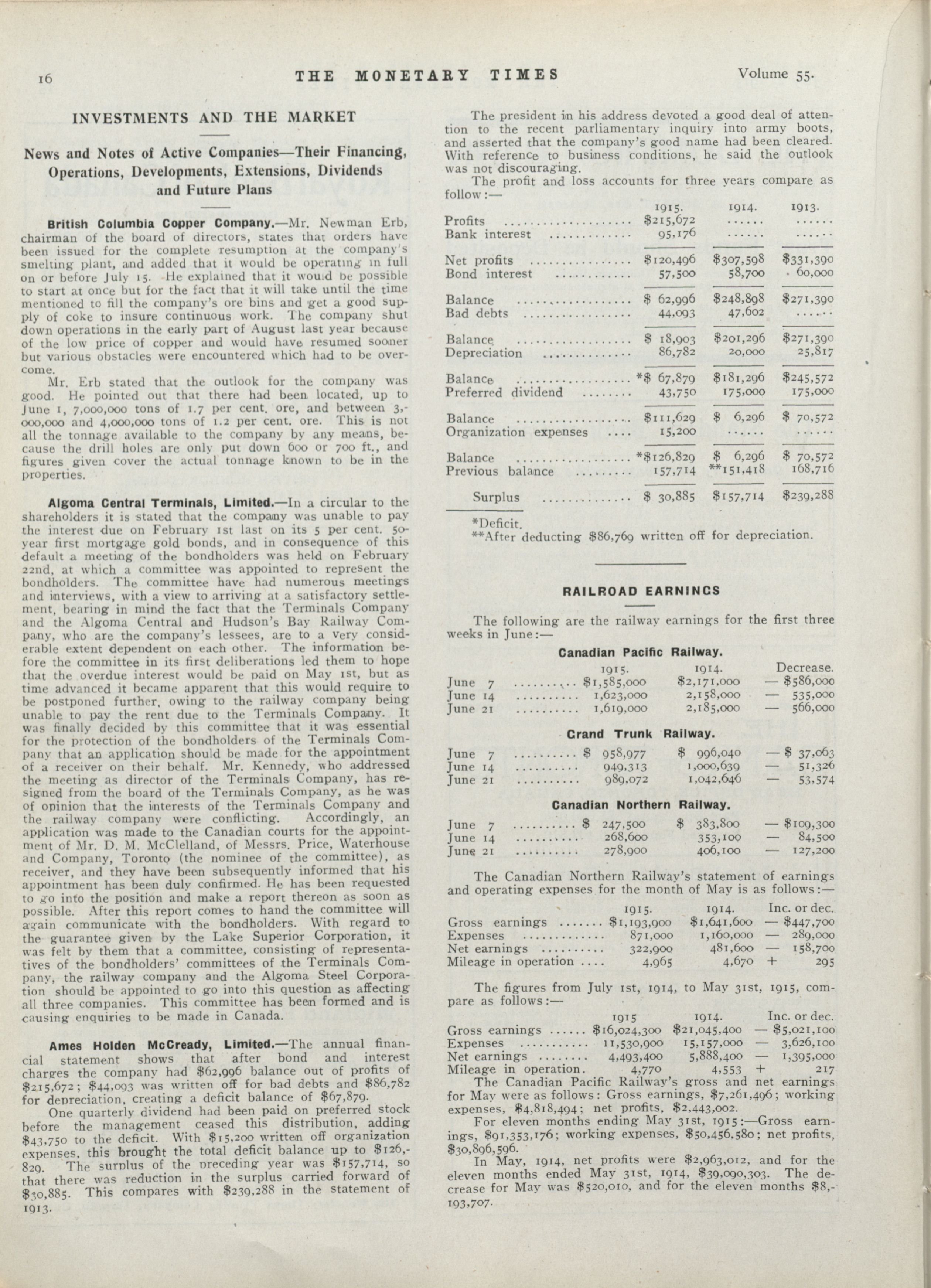 - The Monetary Times, trade review and insurance chronicle. : Volume 55 No. 1 (July 2, 1915)