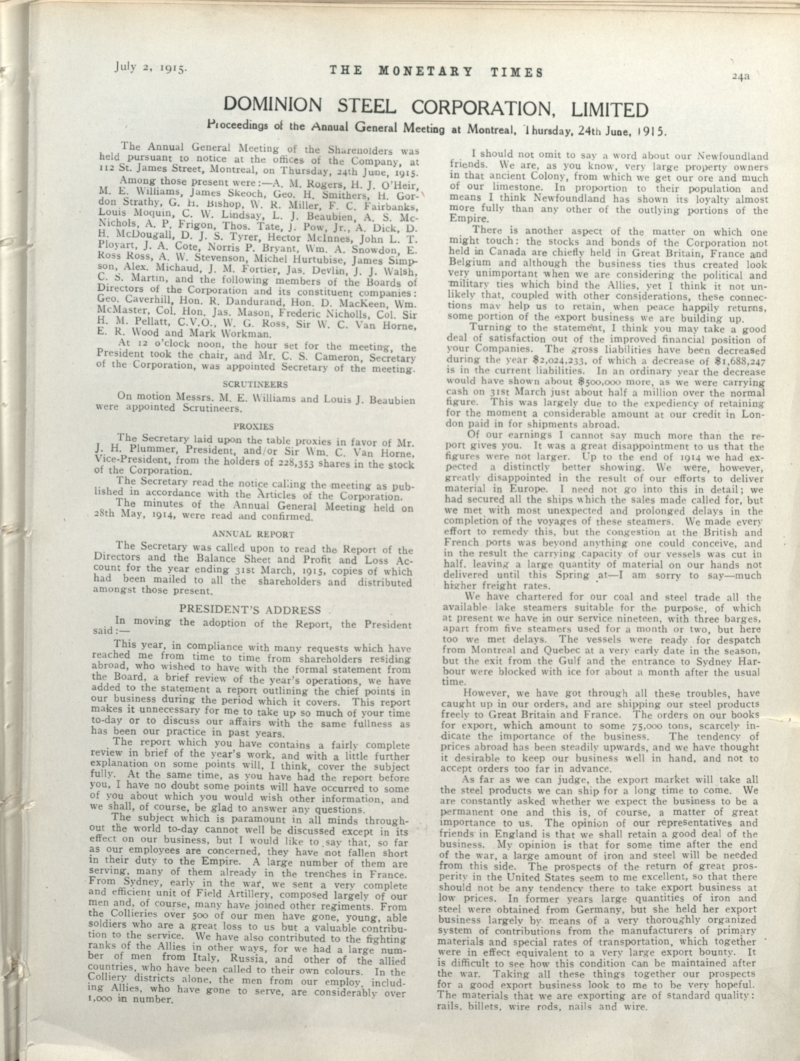 - The Monetary Times, trade review and insurance chronicle. : Volume 55 No. 1 (July 2, 1915)